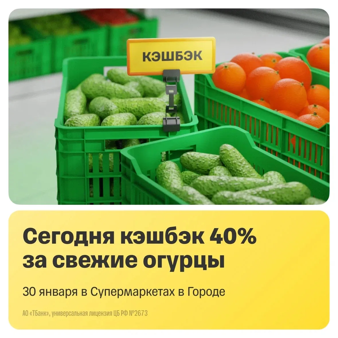 Мы вас услышали — ловите кэшбэк 40% на свежие огурцы при оплате картой Т-Банка в Супермаркетах в Городе 🥒