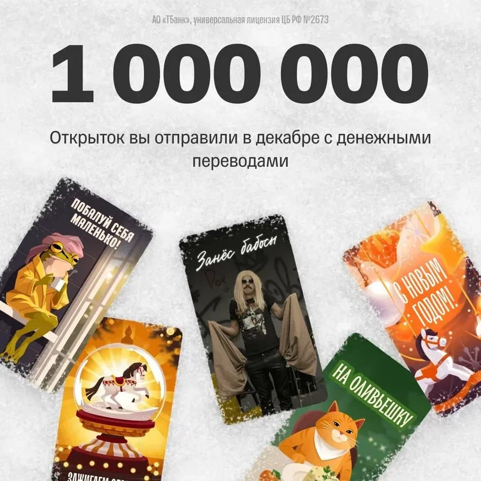 Поздравляем: в декабре вы поставили рекорд и отправили целый миллион открыток через наше приложение 💛