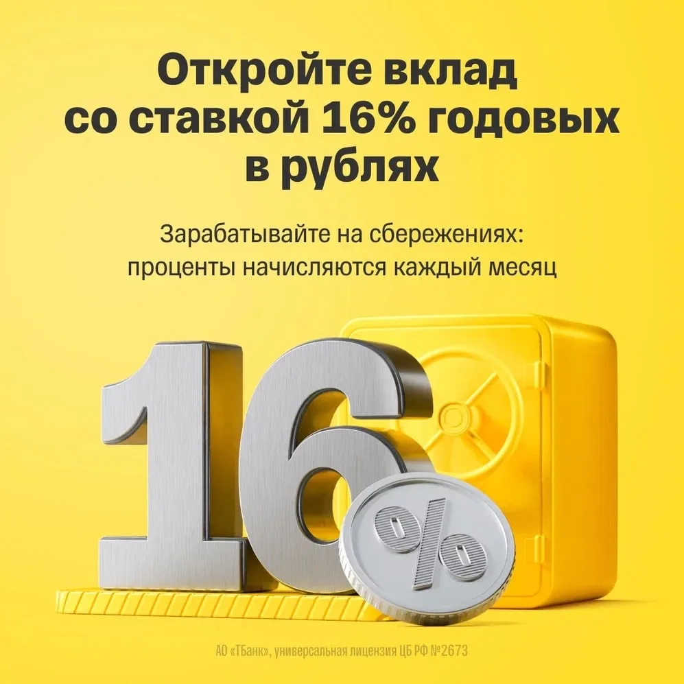 ➡️ Чтобы зафиксировать высокую ставку, откройте вклад в приложении, пополните его на сумму от 50 000 ₽ и наблюдайте, как растут ваши сбережения: https://l.tbank.ru/deposit16