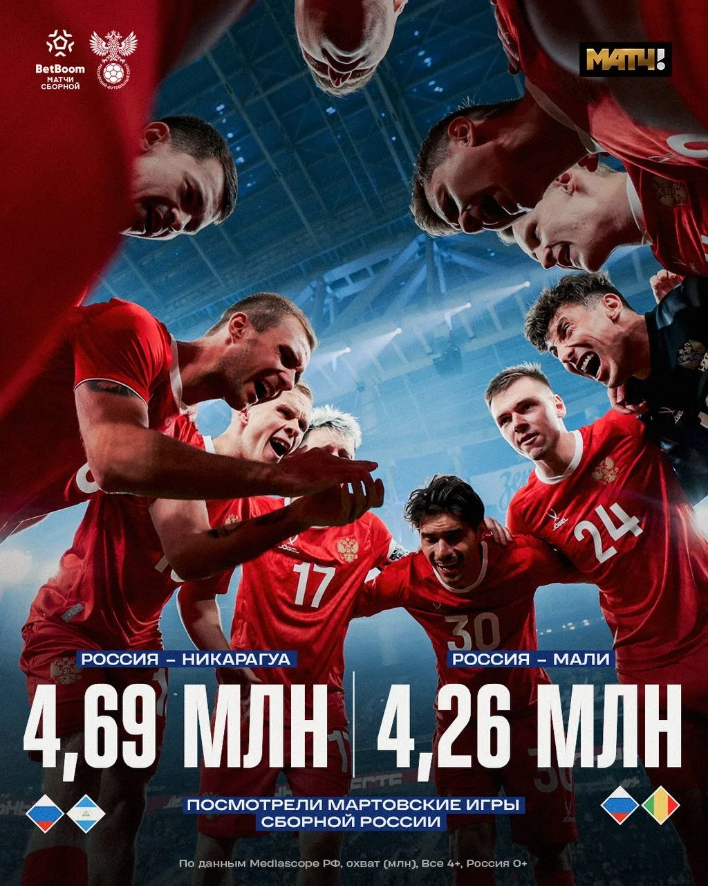 Спасибо каждому, кто в прямом эфире на Матч ТВ смотрел игры сборной России в марте и поддерживал нашу команду 🙌