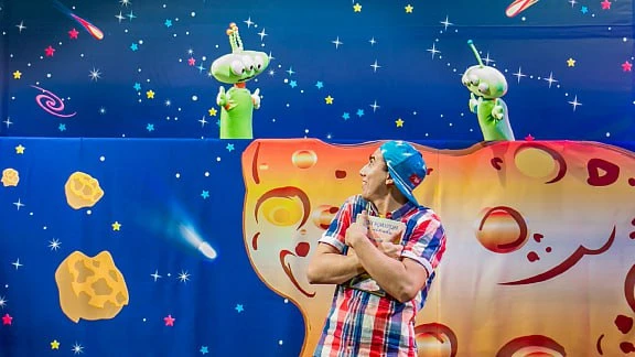 Каждый спектакль «Комикса» — это театрализованный ответ на бесконечные «почему?» взрослеющего человека. Почему возникают черные дыры? Что такое Солнечная система? Спектакли и игровые программы театра созданы как практическое руководство для родителей, которые стремятся объяснить ребёнку окружающий мир. На сигнал из передатчика мальчика Вовки прилетели инопланетяне с просьбой о помощи! Вместе с ними Вовка отправляется в увлекательное путешествие в космос, где узнает планеты, сражается с черной дырой и спасает Солнечную систему.