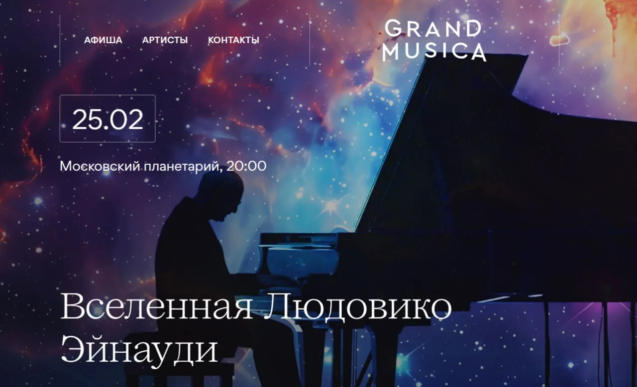 25 февраля в Московском планетарии для вас зазвучат музыкальные шедевры итальянского мастера неоклассической сцены Людовико Эйнауди. Это событие, безусловно, сделает зиму незабываемой!