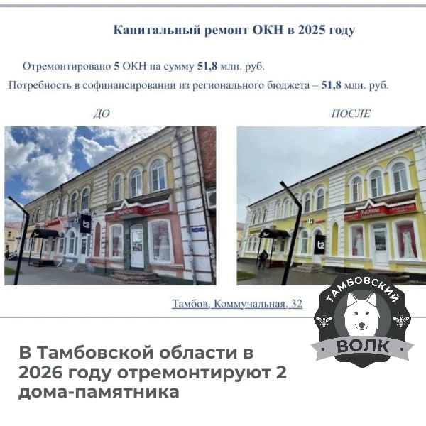 🏛 В Тамбовской области отремонтируют два дома-памятника в 2026 году