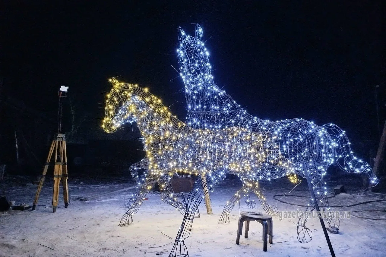 🐎 В селе Кулябовка Тамбовской области появилась световая инсталляция «Тройка лошадей»