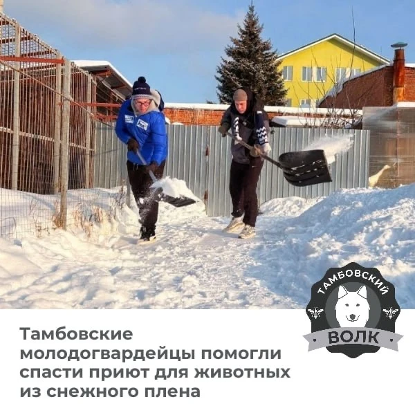 🙂 Тамбовские молодогвардейцы помогли приюту «Доброе сердце» расчистить территорию от снега