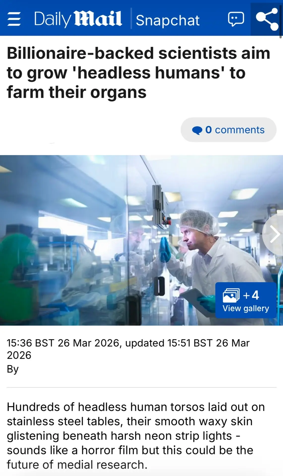 🧠Исследователи хотят заменить лабораторных животных «безголовыми людьми»