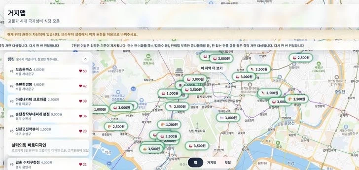 Жители Южной Кореи могут зайти в карту для нищих и найти места, где можно поесть за $7 и меньше.