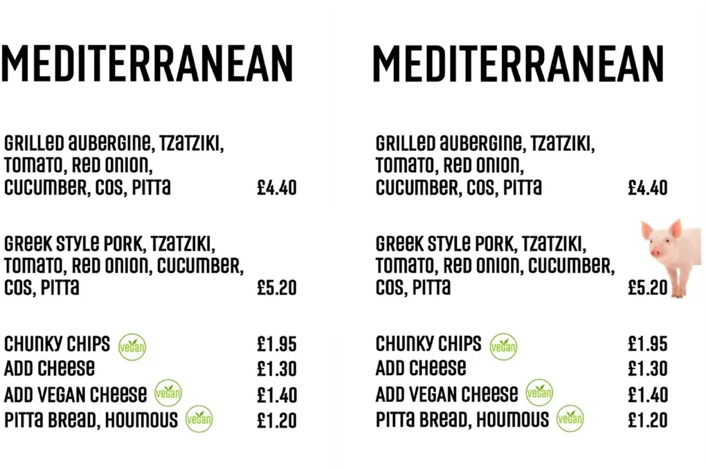 Ученые выяснили, что изображения животных рядом с мясными блюдами заставляют людей чаще выбирать вегетарианские варианты.