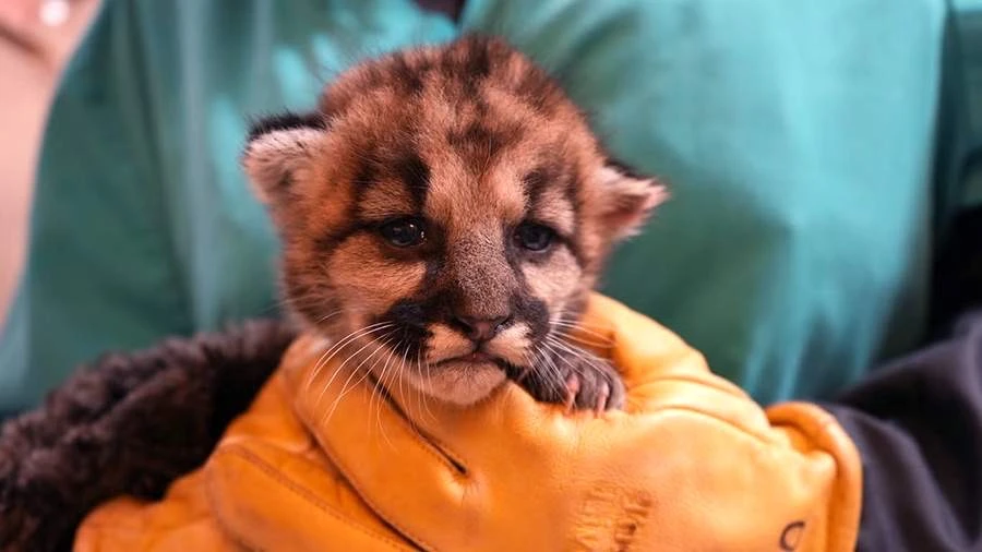 В США горного львенка спасли ученые — вероятно, его бросила мама.