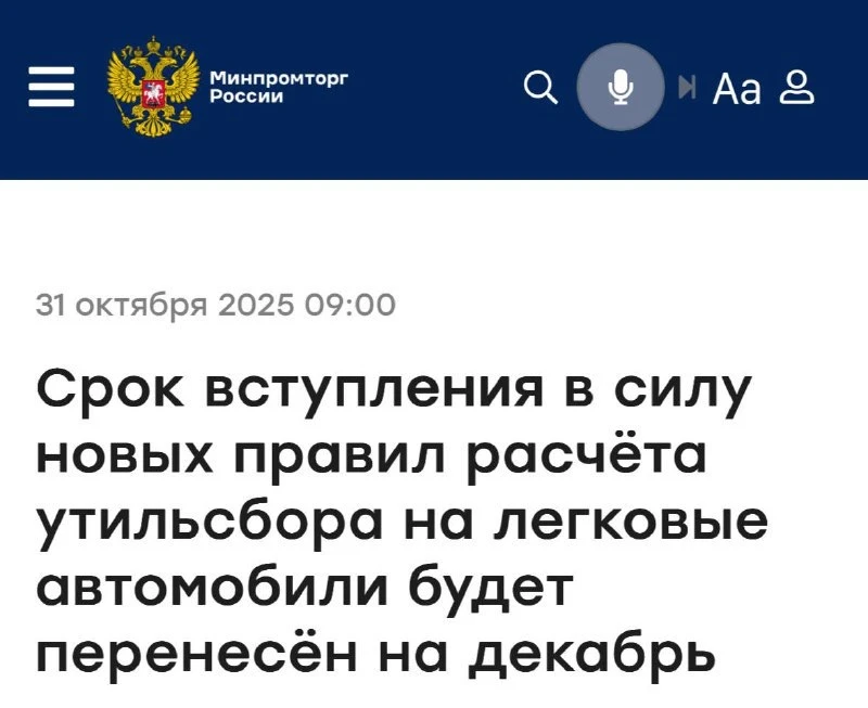 Старт нового утильсбора отложили с 1 ноября на декабрь для всех. Проект постановления уже внесён в правительство РФ.