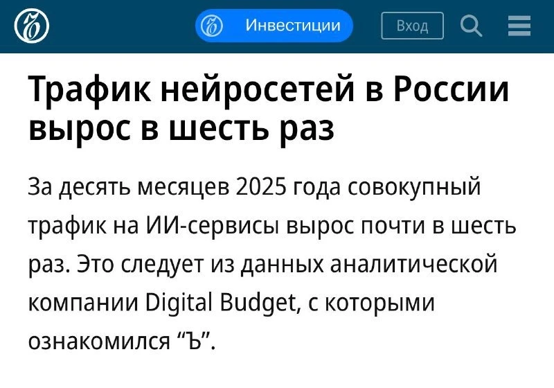 За десять месяцев этого года у россиян вырос интерес к нейросетям – трафик на ИИ-сервисы вырос почти в шесть раз.