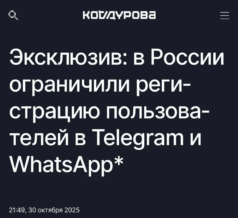 В России запретили операторам передавать SMS и звонки для новых пользователей Telegram и WhatsApp*, сообщает Код Дурова.