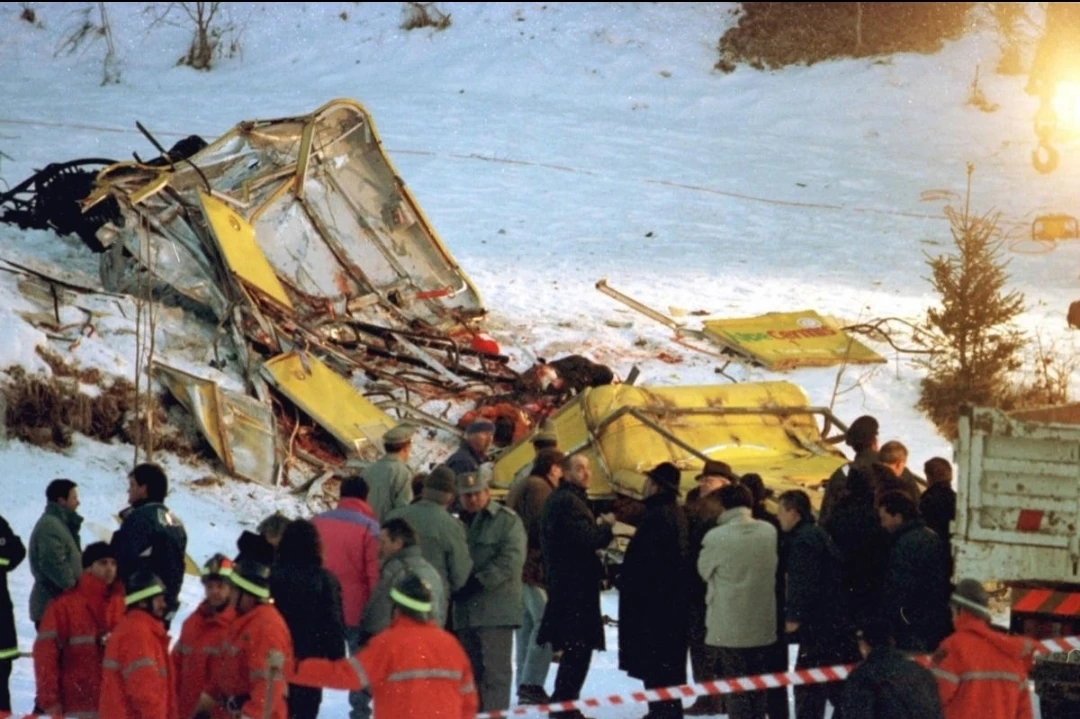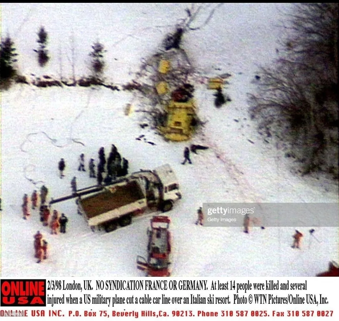 3 февраля 1998 года военный самолёт Grumman EA-6В Prowler, BuNo 163045, CY-02, позывной Easy 01, самолет радиоэлектронной борьбы, из состава эскадрильи РЭБ (VMA-2) Корпуса морской пехоты США, базировавшийся на базе НАТО в Италии, выполнял тренировочный полёт в Доломитовых Альпах. Экипаж должен был пройти на небольшой высоте и отработать постановку радиоэлектронных помех. Часть полёта проходила над долиной, где расположен популярный горнолыжный курорт Чермис. Добраться до него можно только из городка Кавалезе по канатной дороге. Пилоты EA-6B Prowler снизились ниже минимально разрешённой высоты полёта для того, чтобы «повеселиться» и «снять красивый пейзаж».
