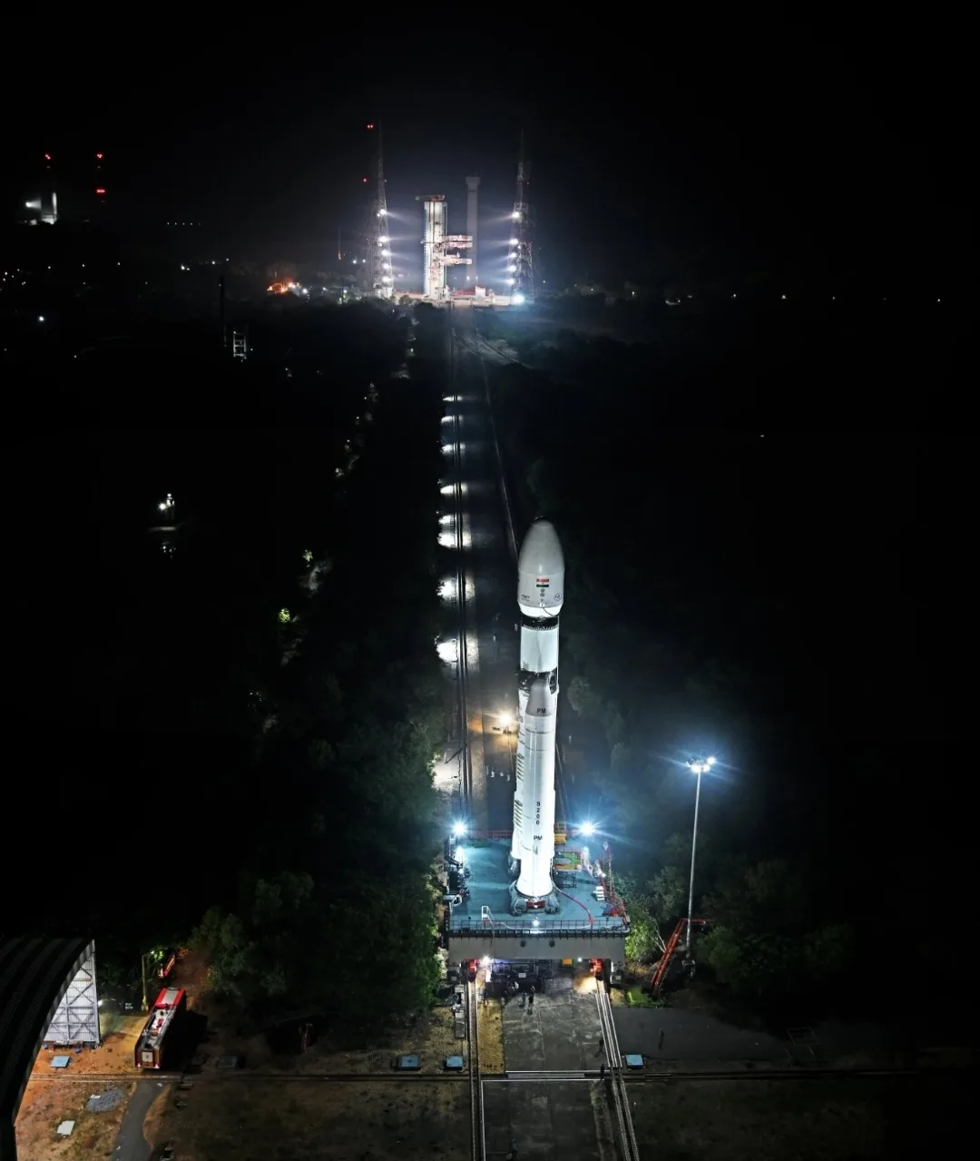 LVM3 вывезена на вторую стартовую площадку Космического центра имени Сатиша Дгавана для запуска 6,5-тонного спутника связи BlueBird-6 американской компании AST SpaceMobile.