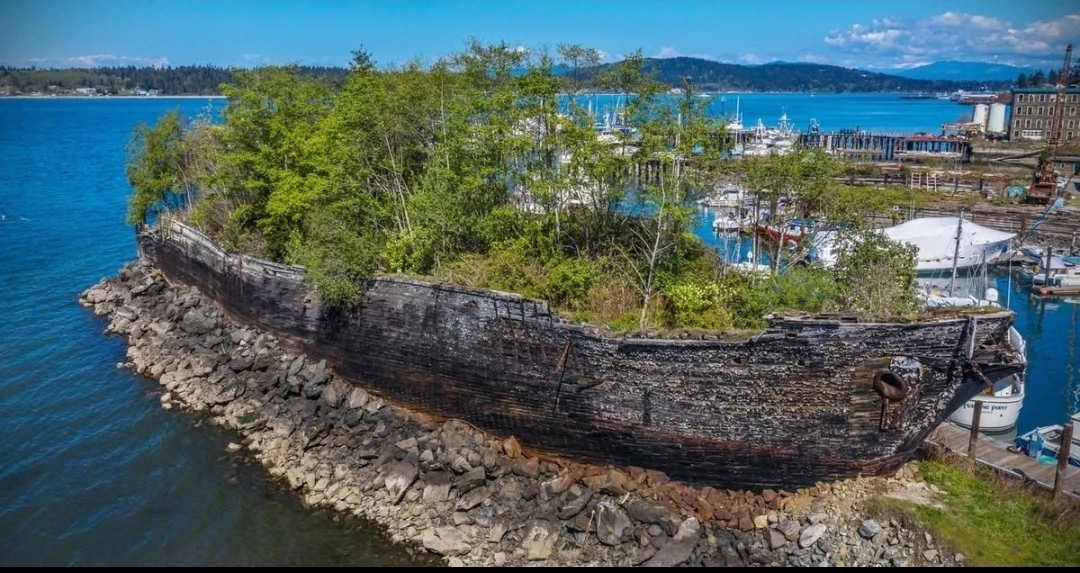 На северо-западе США, там, где пролив Розалио разделяет штат Вашингтон и канадские острова, лежит остров Фидальго. Его скалистые берега, окутанные туманами и омытые холодными водами, стали неожиданной точкой на карте для любителей необычных достопримечательностей. Здесь, у кромки прибоя, покоится нечто удивительное — старинная четырехмачтовая шхуна La Merced. Но это не обломки кораблекрушения в классическом понимании. Судно, чей стальной корпус давно проржавел и слился с береговой линией, представляет собой сюрреалистическое зрелище: из его недр, там, где когда-то возвышались мачты, теперь растет целая маленькая роща вечнозеленых деревьев. Это корабль-призрак, корабль-сад, корабль-памятник своей собственной бурной жизни.