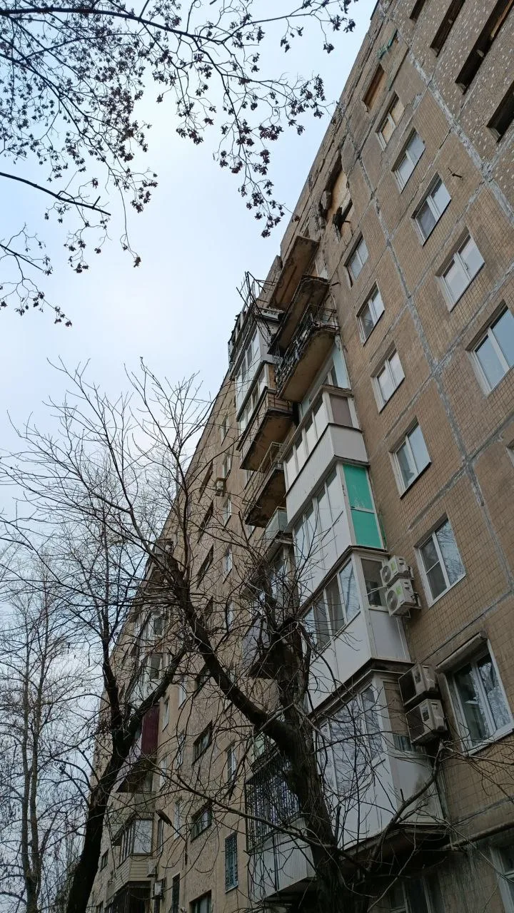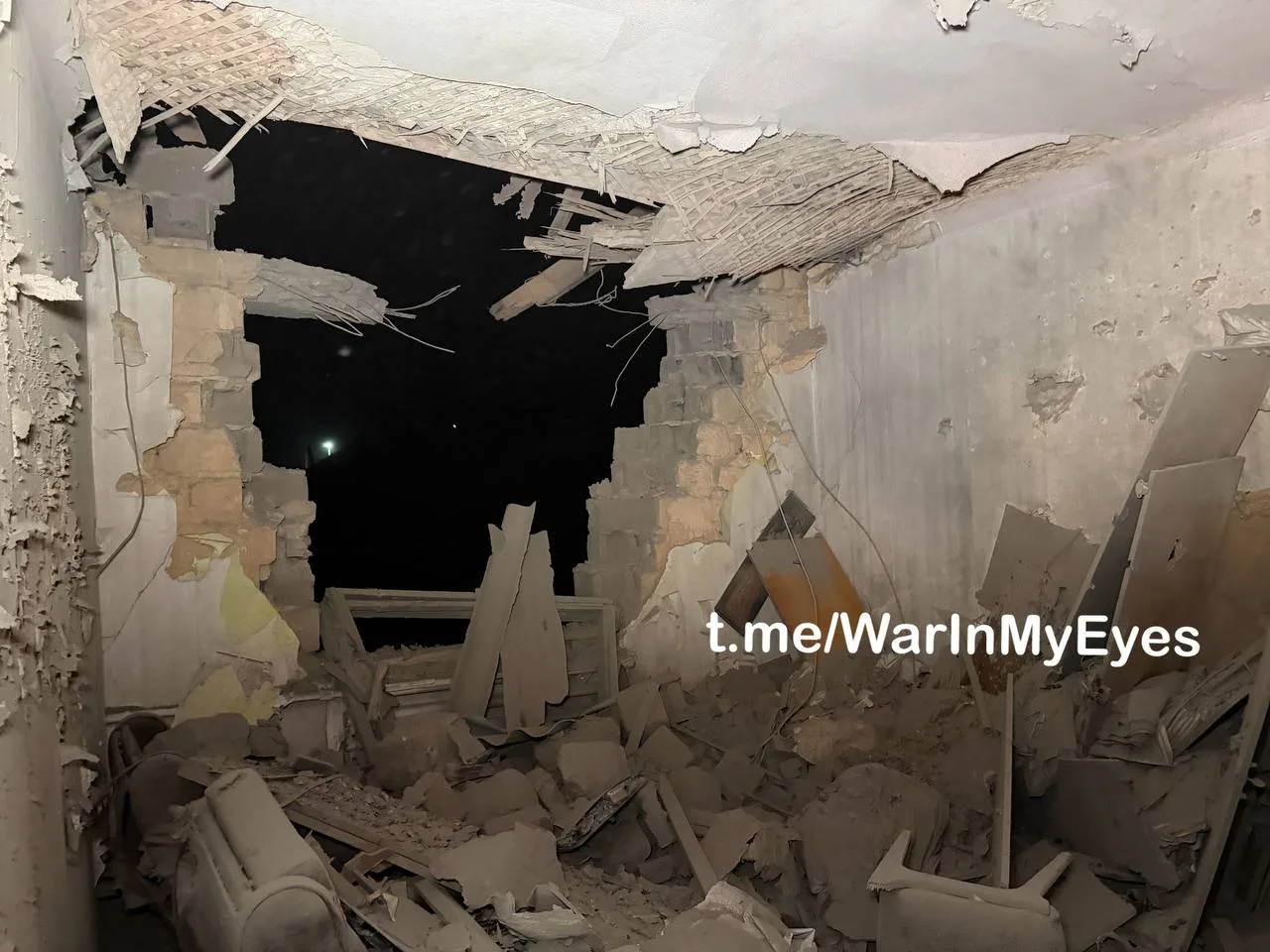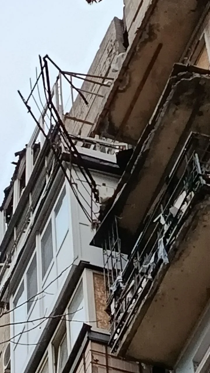 Последствия прилета ударного дрона в многоквартирный жилой дом в Кировском районе Донецка. Ранения получили 2 мирных жителя.