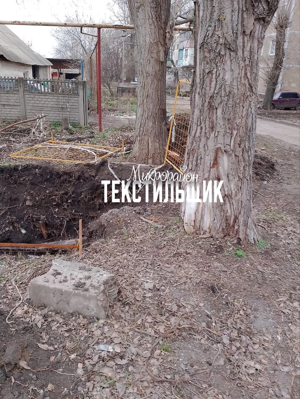 От жителей: Осенью работники общежития (ул. Текстильщиков, 5 б) производили ремонт, и до сих пор остается не зарыто это место. Этот «котлован» находится рядом с детской площадкой и местом, где ребята играют в футбол. На этих буграх малыши устраивают игры и горки, что очень опасно, т. к. в «котловане» находятся трубы и люки теплосетей.