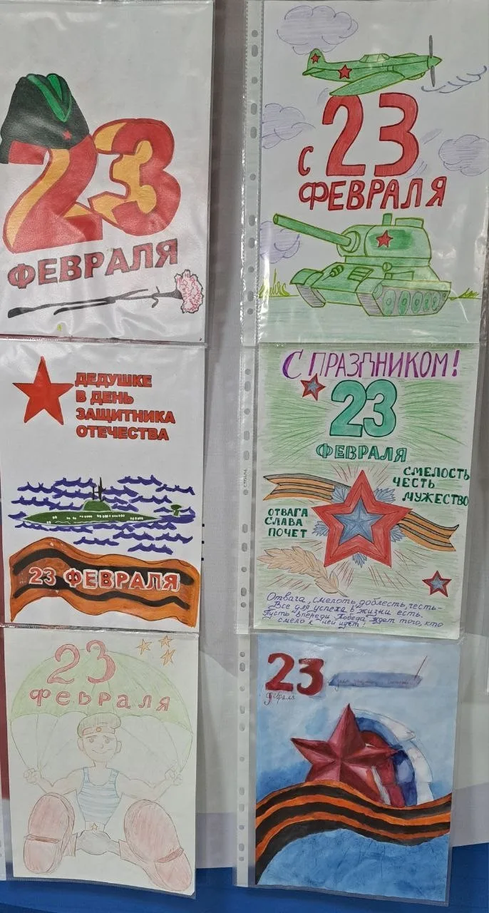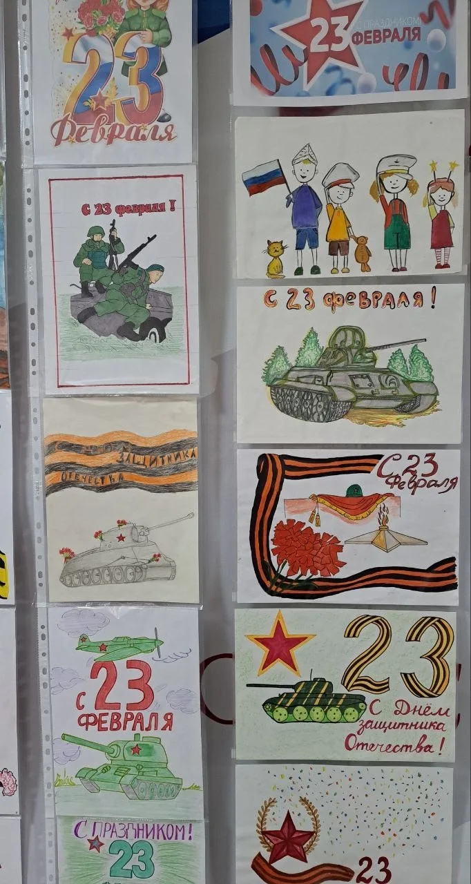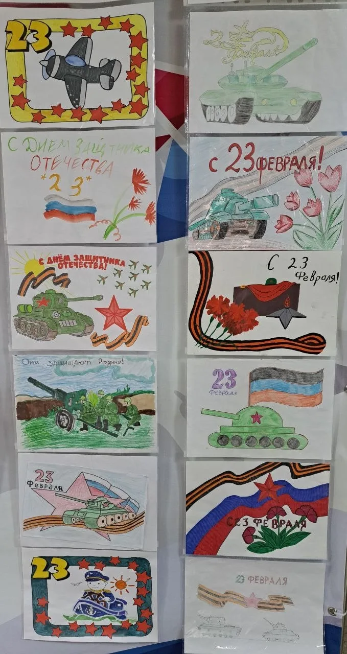 Выставка рисунков, посвященная Дню защитника Отечества, которая проходит в гимназии № 92. Учащиеся проявили свои таланты и креативность, создавая уникальные работы на тему патриотизма и защиты Родины.