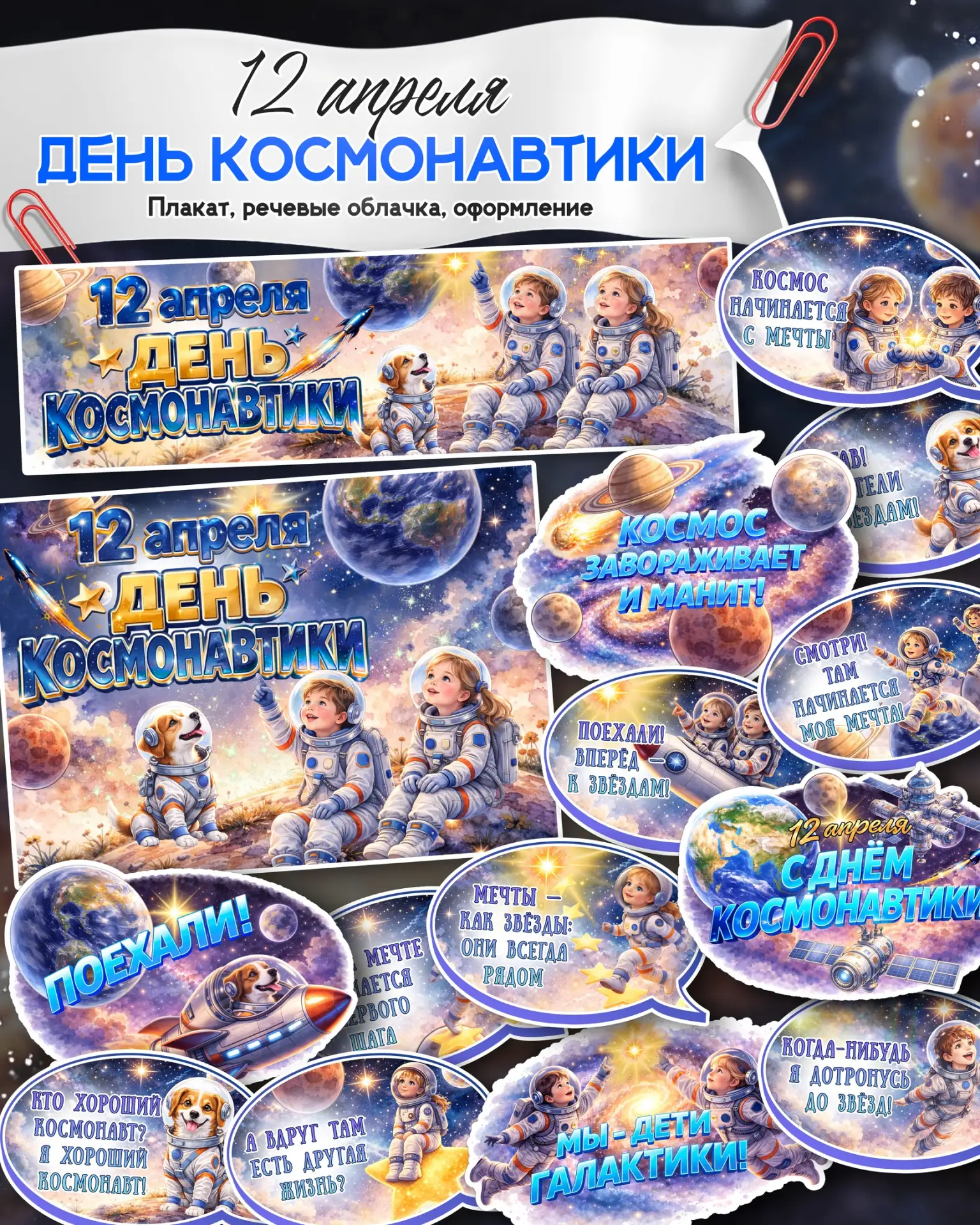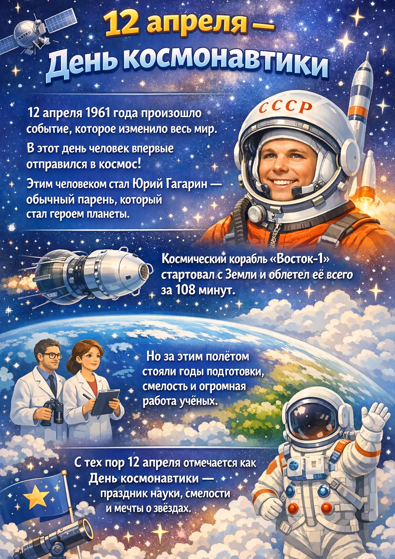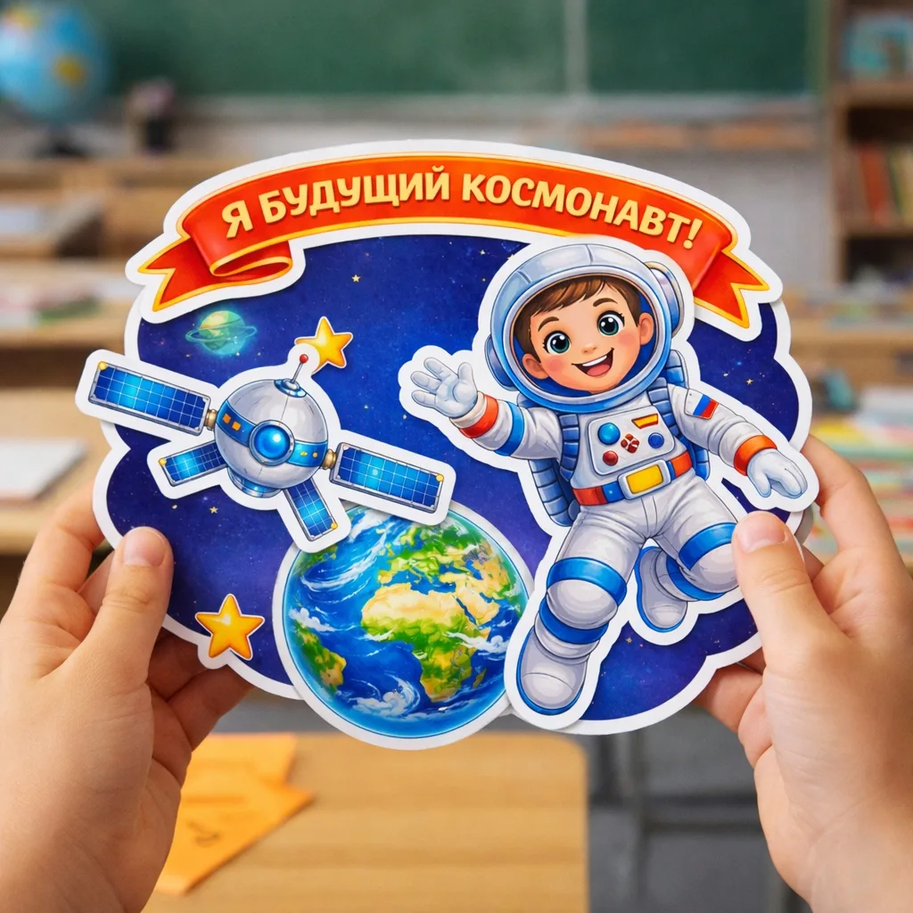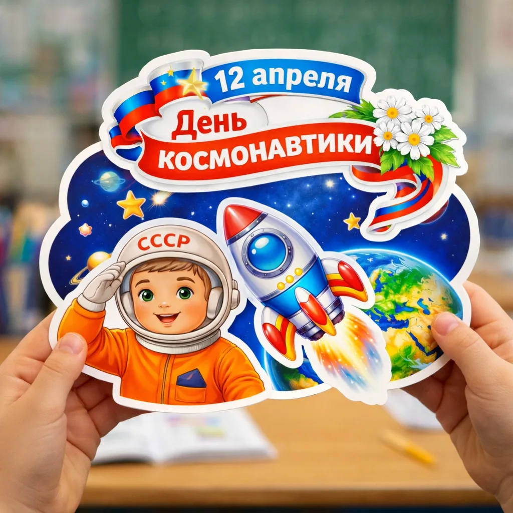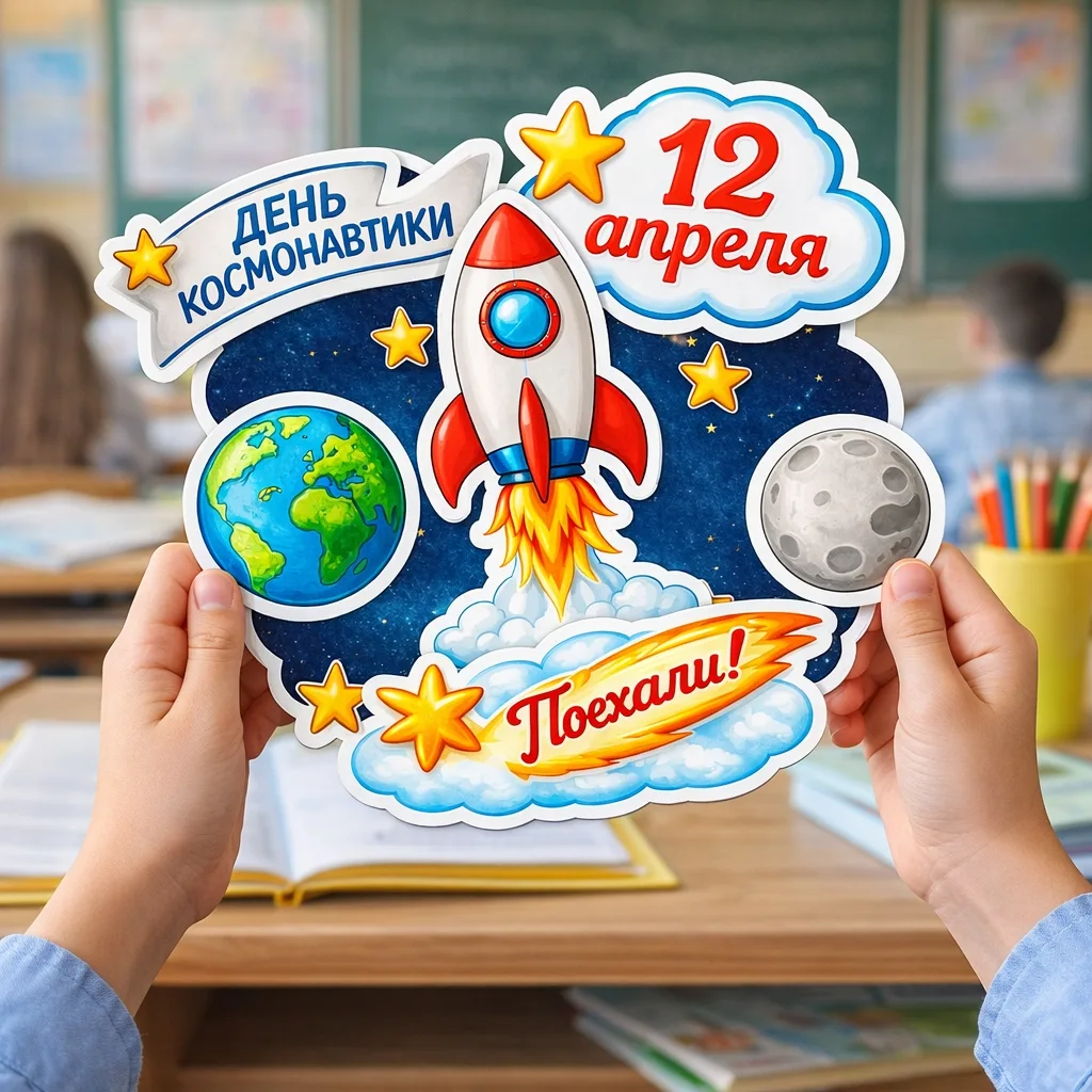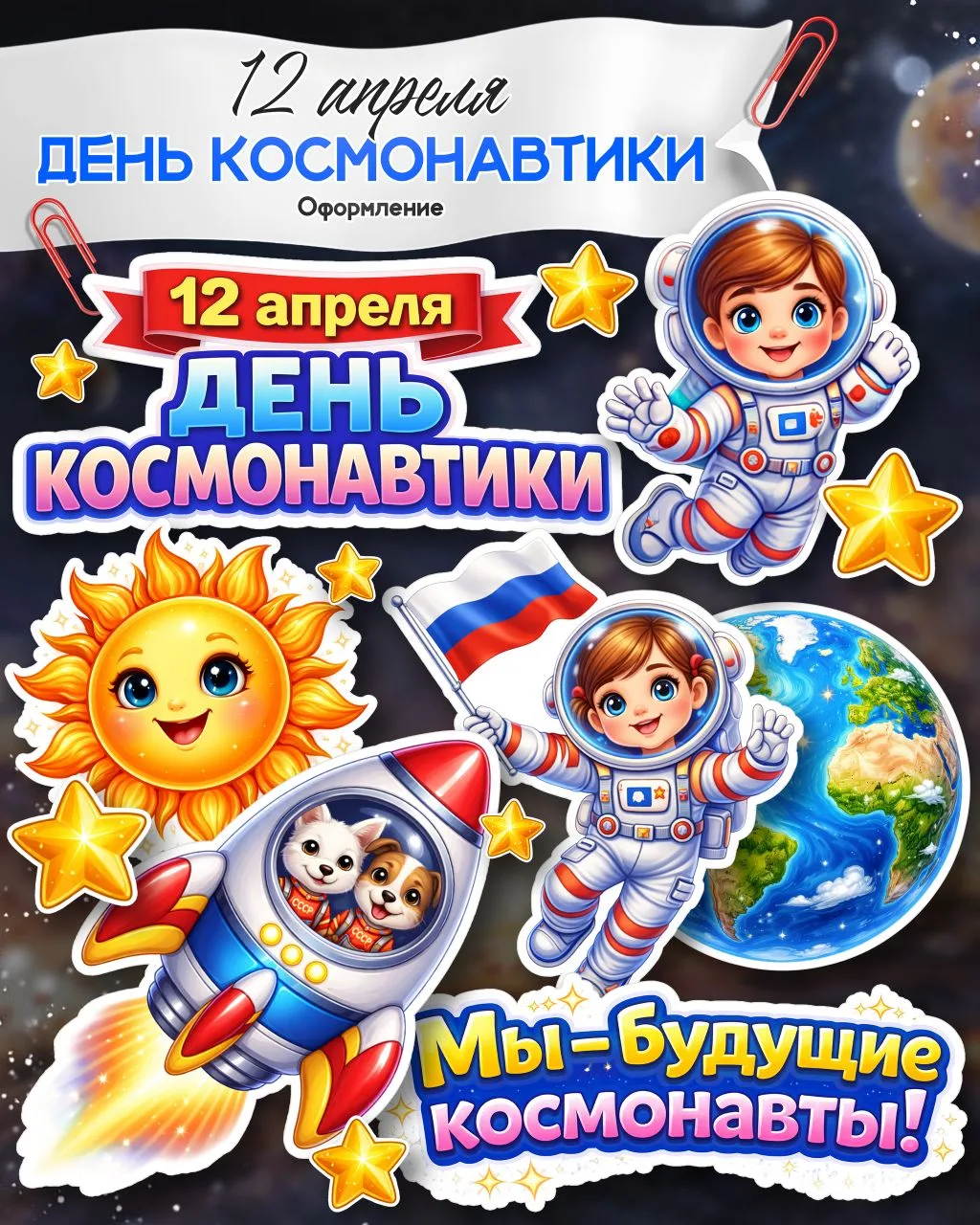 🔹 Надписи «12 апреля», «День космонавтики», «Мы — будущие космонавты!»