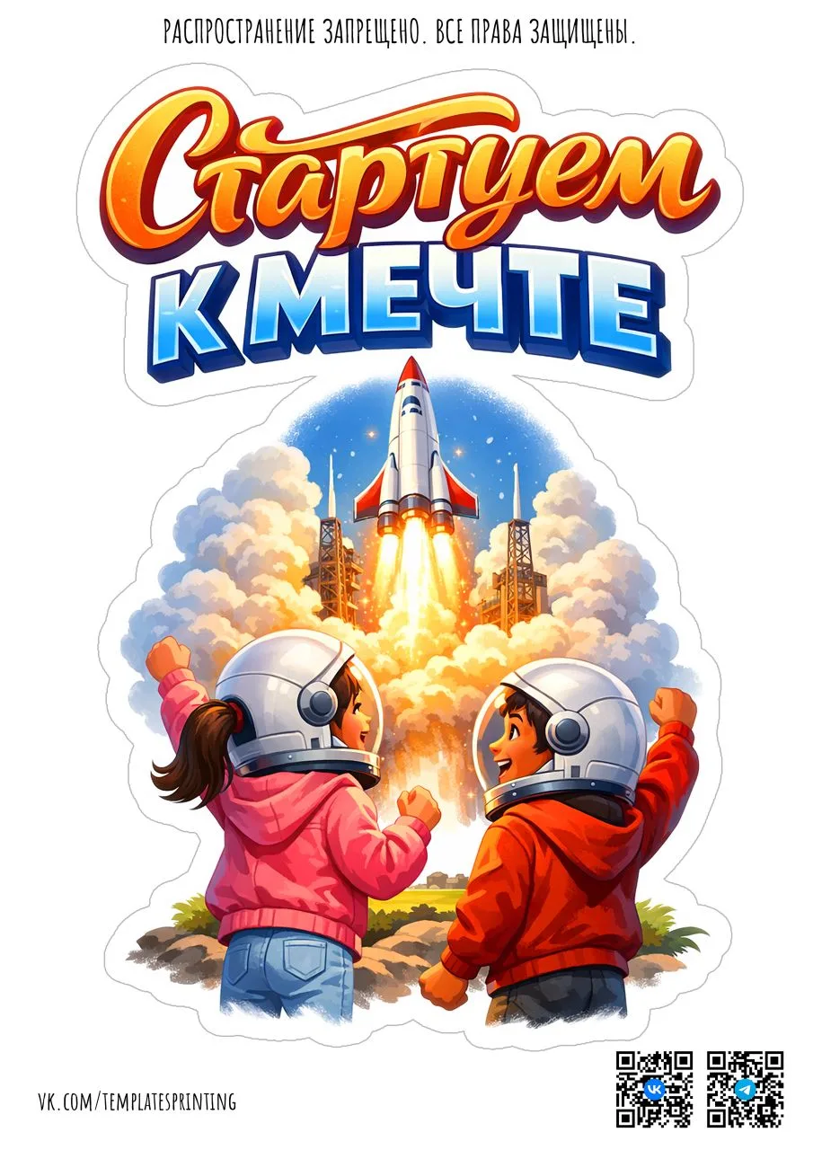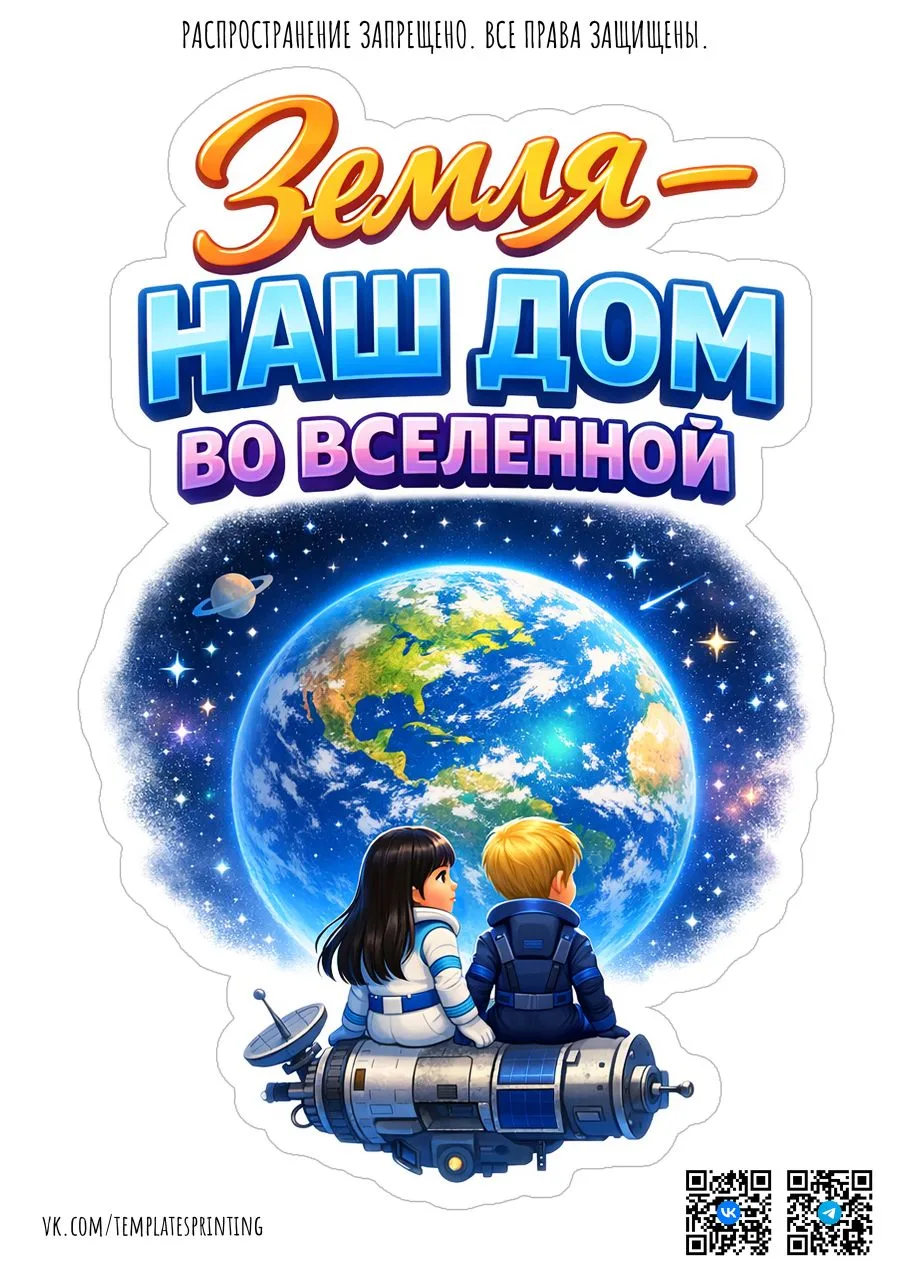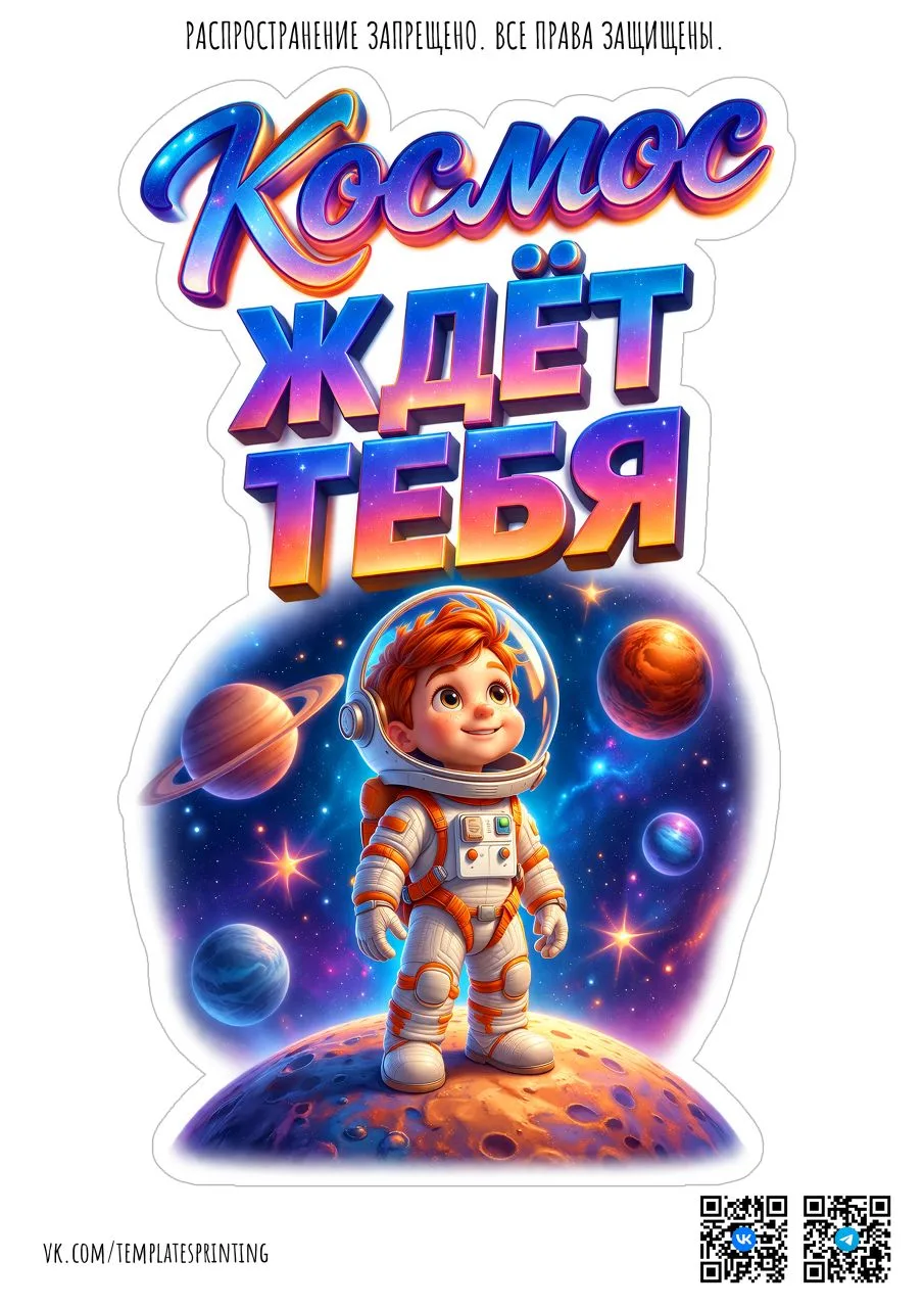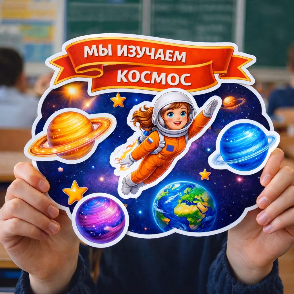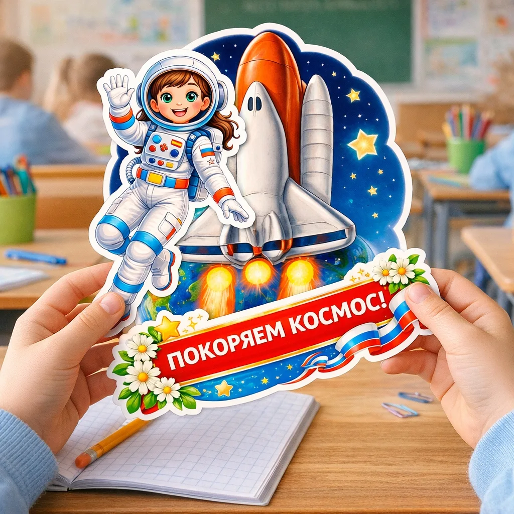 🔹 Надписи «12 апреля», «День космонавтики», «Мы — будущие космонавты!»