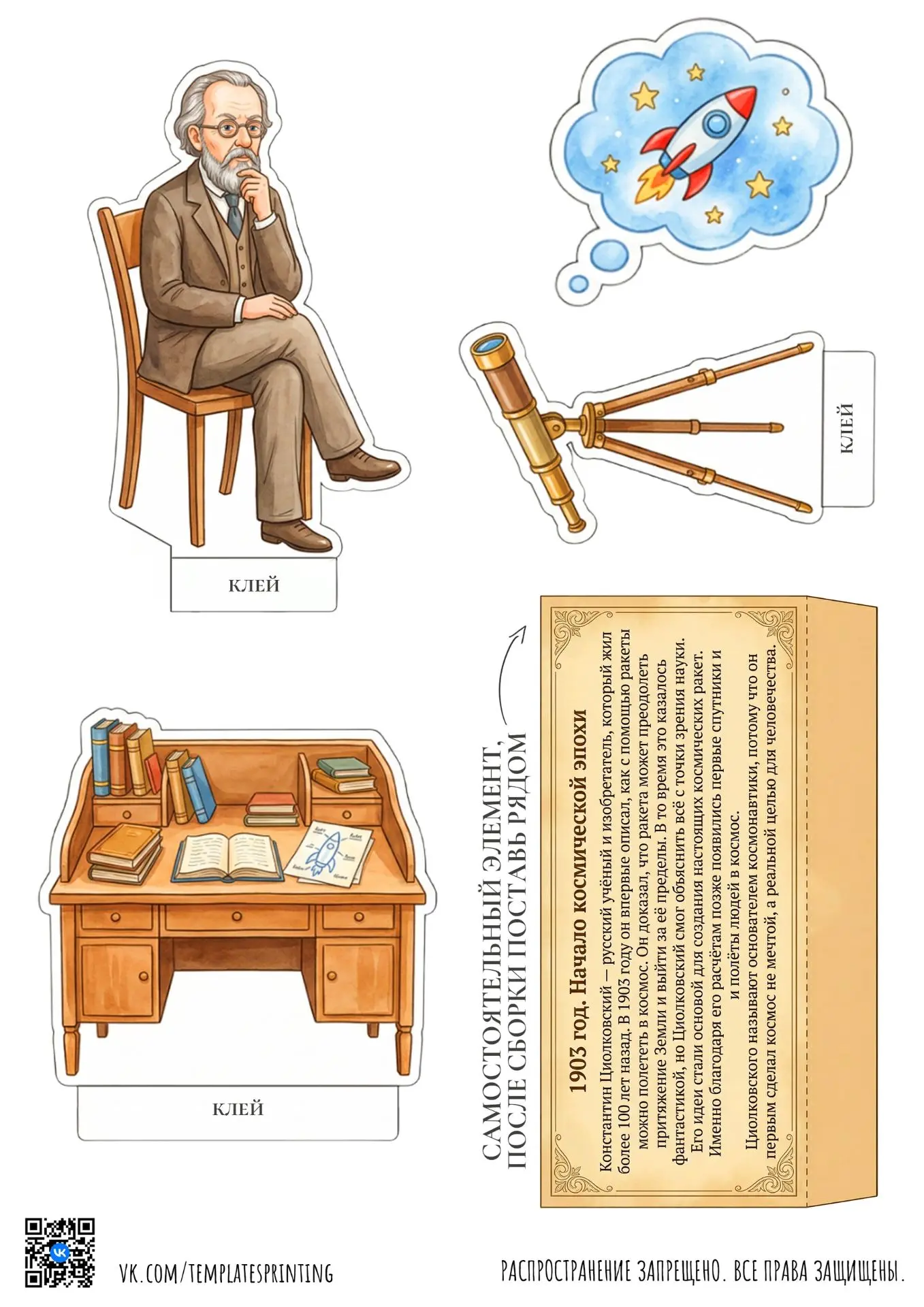🔹 Готовые шаблоны, 6 сцен (12 листов А4) ко Дню Космонавтики на 12 апреля