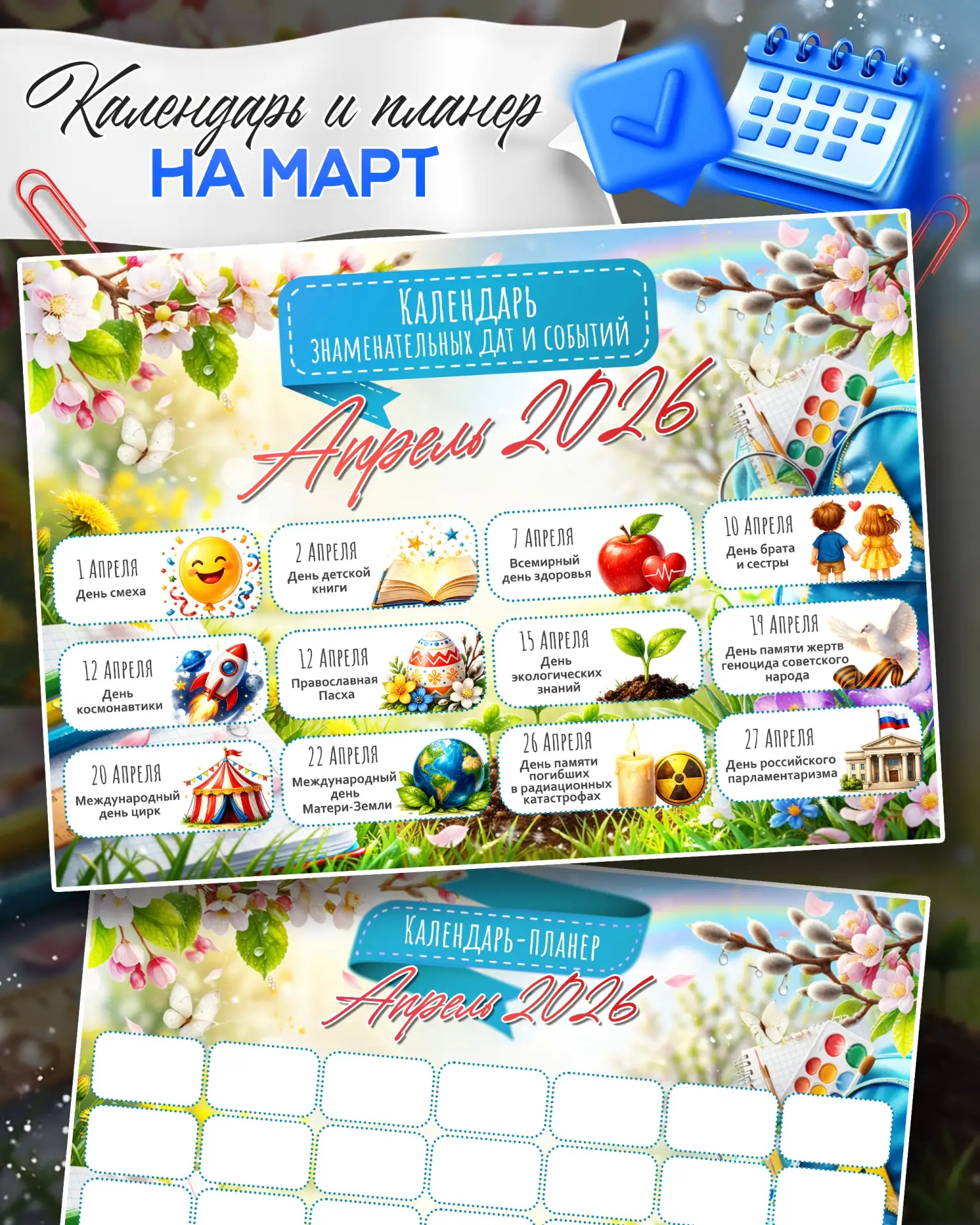 🔹 Календарь знаменательных дат и событий — важные международные и всероссийские праздники апреля.