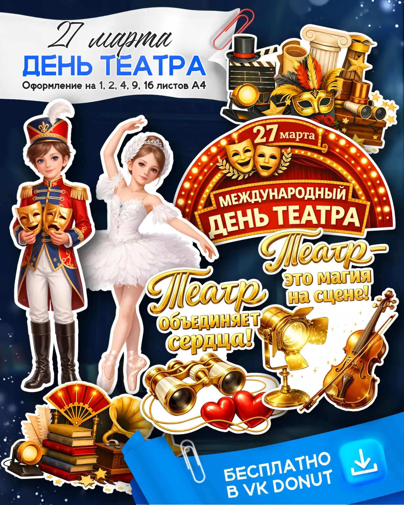 🎭 ДЕНЬ ТЕАТРА — яркое оформление для класса и мероприятий на 27 марта!
