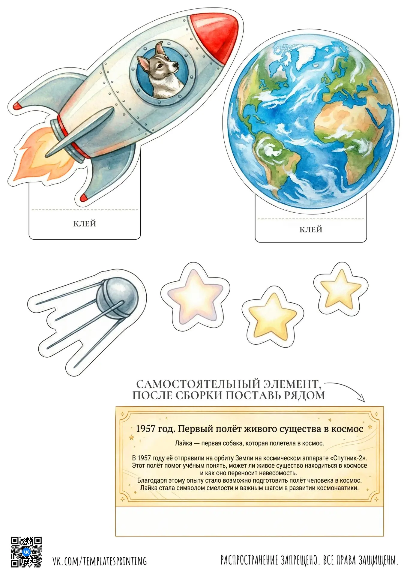 🔥 6 ярких поделок ко Дню Космонавтики — 1 шаблон бесплатно!