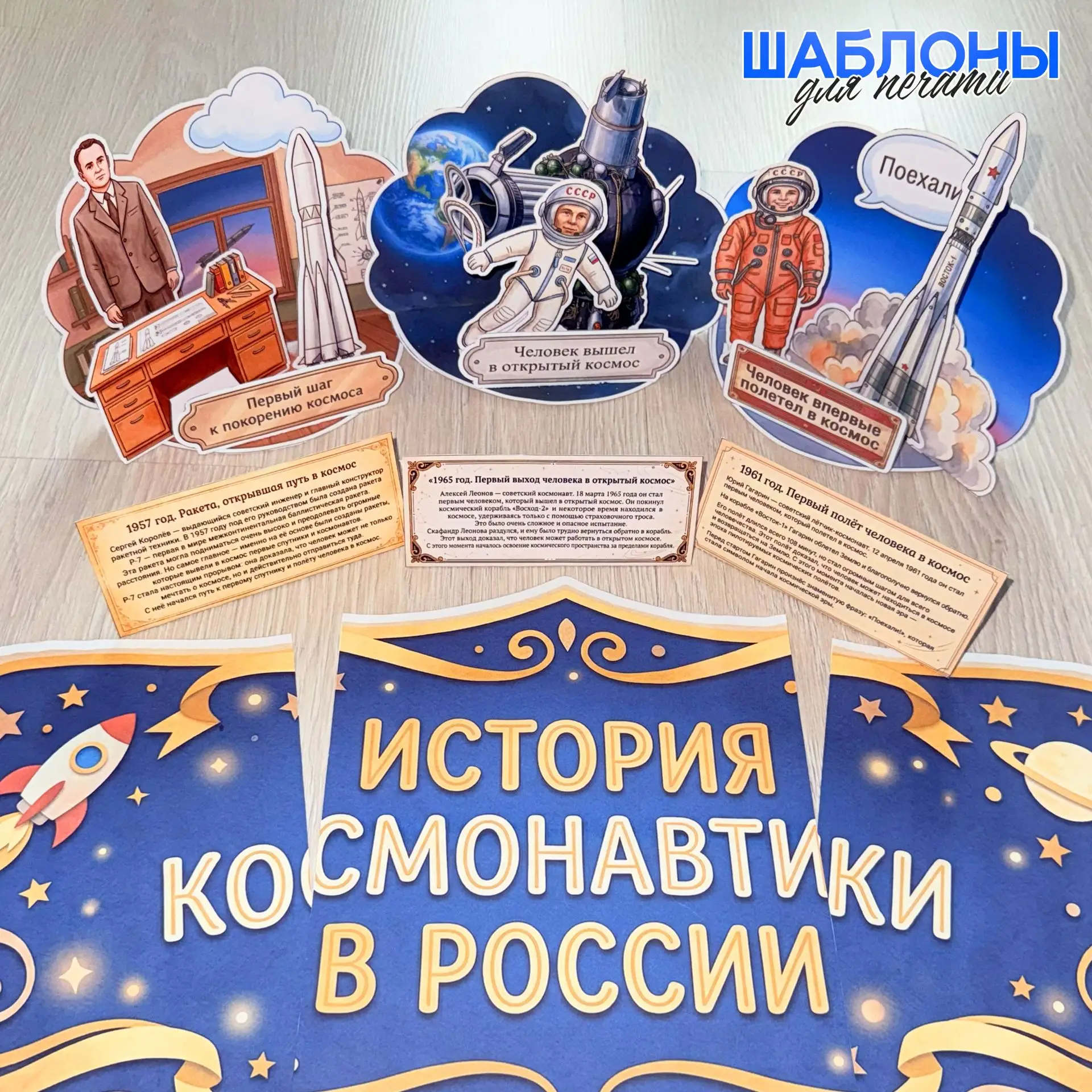 Подготовили набор красочных шаблонов поделок, которые можно быстро распечатать и сделать с детьми на классном часе, занятии или школьном мероприятии к 12 апреля 🚀