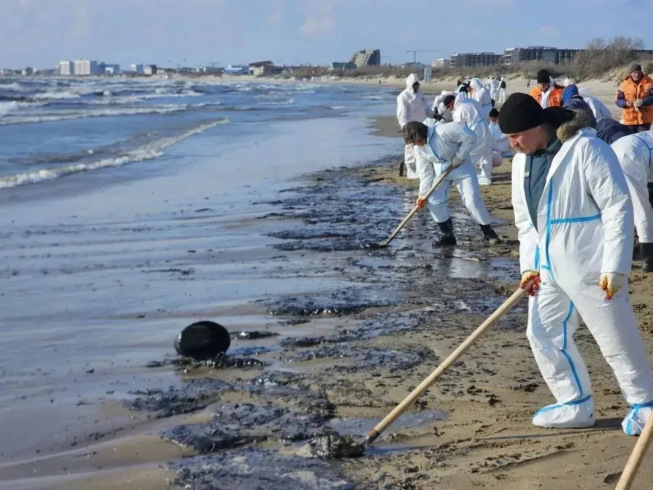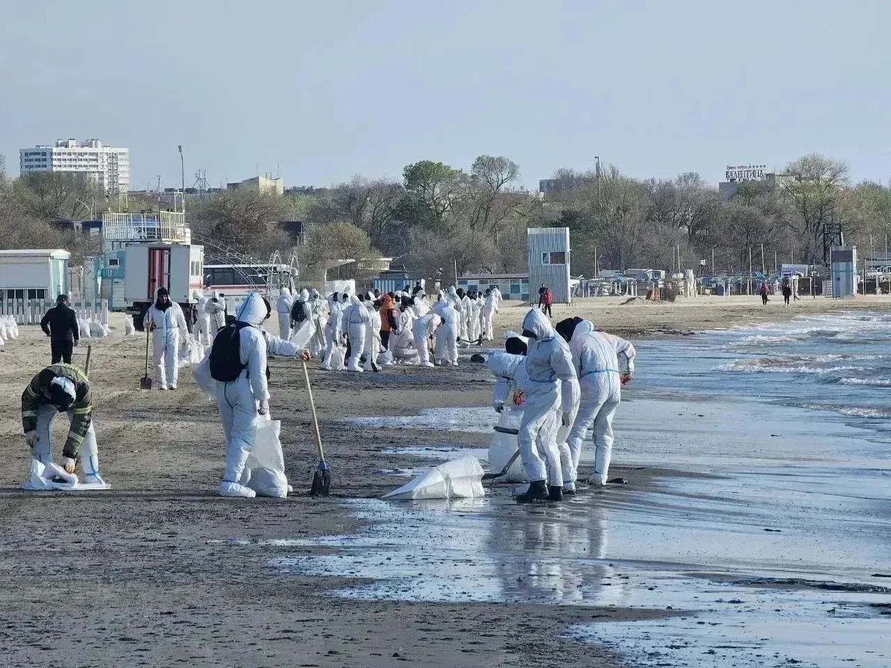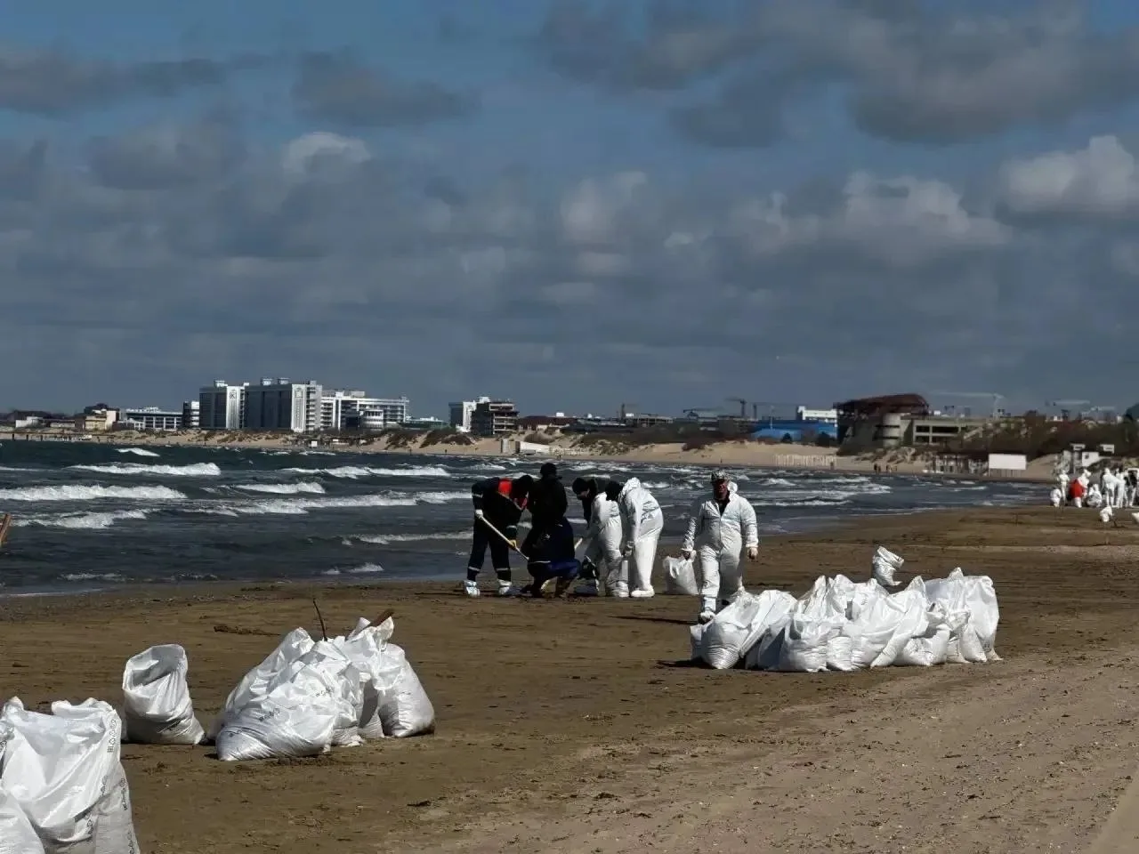 ⚡️Работы по уборке нового выброса нефтепродуктов на центральном пляже Анапы планируют завершить в течение суток