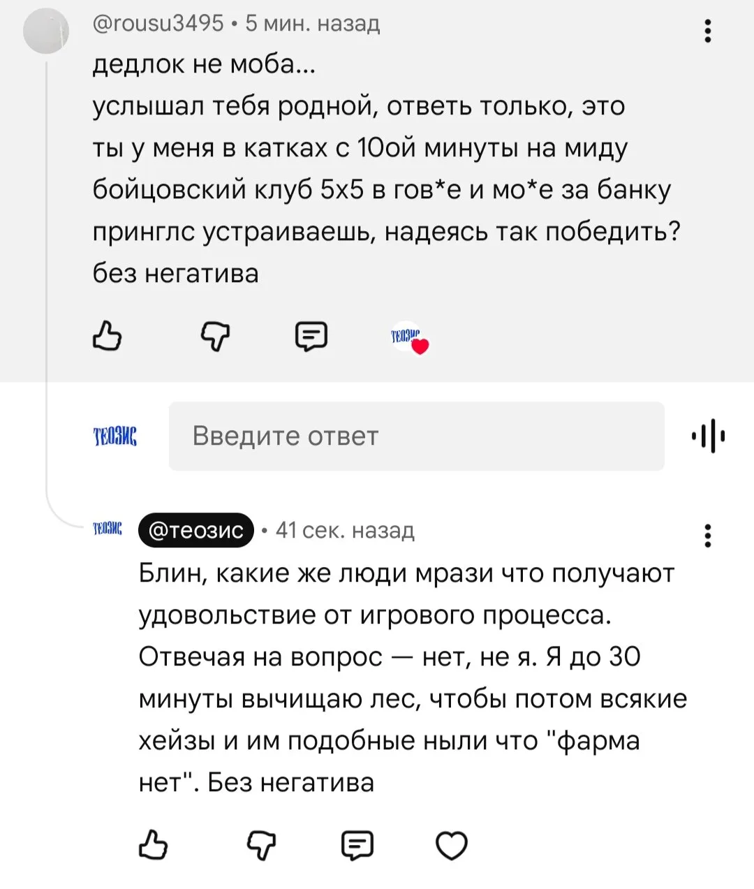 Многие начали прям на говно исходить от этого мнения, т.к. люди не совсем поняли то, как дедлок использует механики из МОВА-игр, а не полностью их основу. Ну для начала у нас тут нет какого-либо контроля юнитами, ролевого отыгрыша и разделения по позициям. Я об этом упоминаю в ролике, но, видимо, те, кто пишут комментарии, не доходят до этих слов (ведь это надо целую минуту не брызжать слюной). У нас все еще есть огромный упор именно на бегательно-стрелятельный скелет бегалки стрелялки, и даже с учетом персонажей, что «могут за всю игру ни разу не нажать лкм» (лол, удачи тебе на лейнинге, сынок), это все ещё шутерный скелет с моба-элементами. Ну а если все же у нас тут МОВА, то и Overwatch тогда не шутер, особенно режим Стадиона, ведь, ну, бля, тут предметы, закуп, роли, и можно не нажимать лкм.