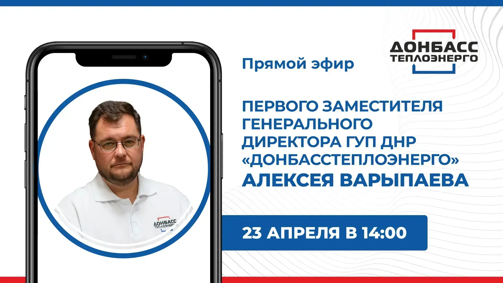 📆В четверг, 23 апреля, в 14:00 по поручению Главы ДНР Дениса Пушилина состоится прямой эфир с первым заместителем генерального директора ГУП ДНР «Донбасстеплоэнерго» Алексеем Варыпаевым.