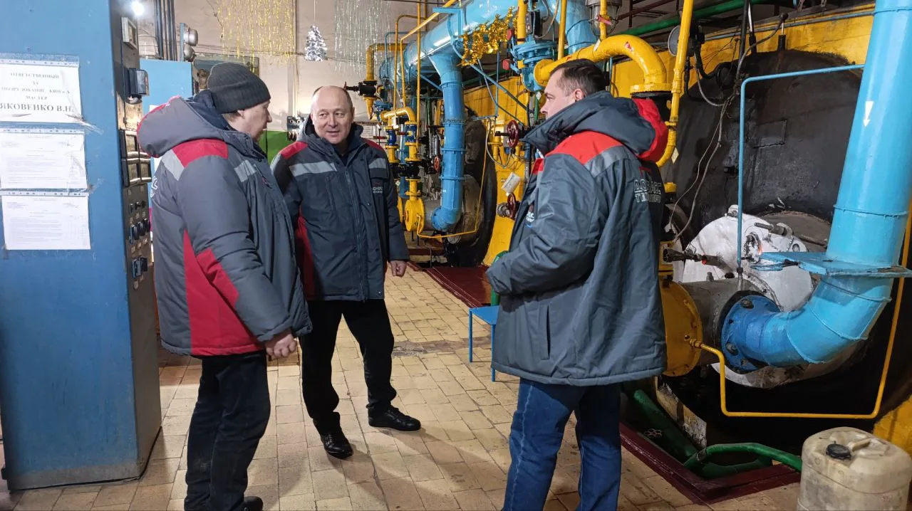 Директор Филиала "Донецктеплосеть" ГУП ДНР "Донбасстеплоэнерго" Андрей Зарипов совместно с главным инженером Филиала Алексеем Клецковым и главным инженером Киевского района тепловых сетей Евгением Попадюком провели проверку работы котельной ОТБ, расположенной в Киевском районе столицы Республики.