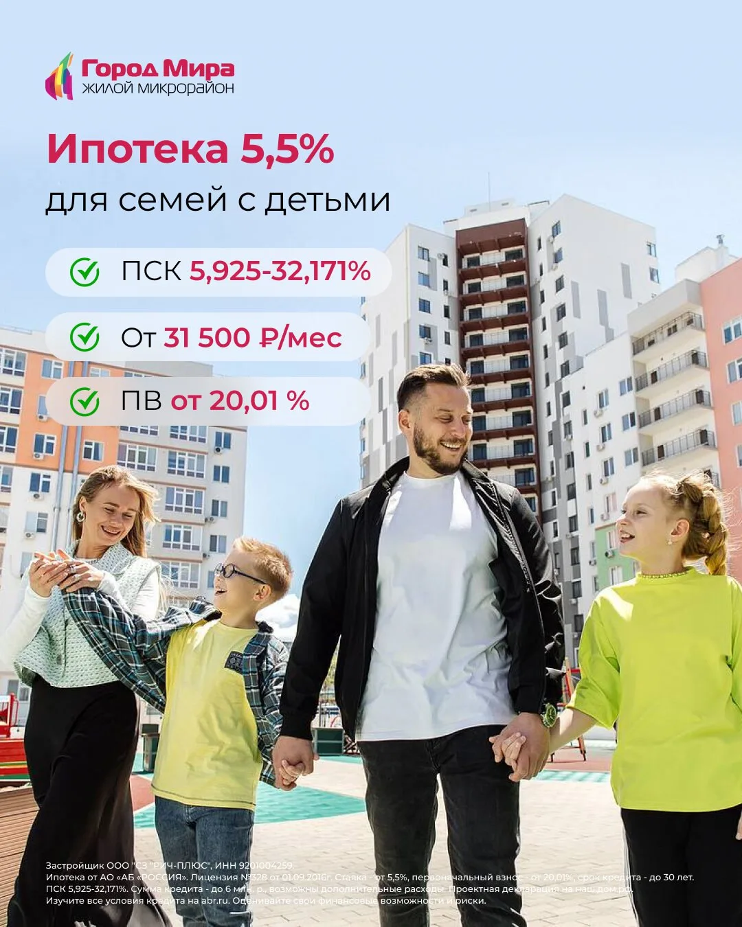 В «Городе Мира» вы можете купить жильё в ипотеку от 5,5% по выгодным условиям: