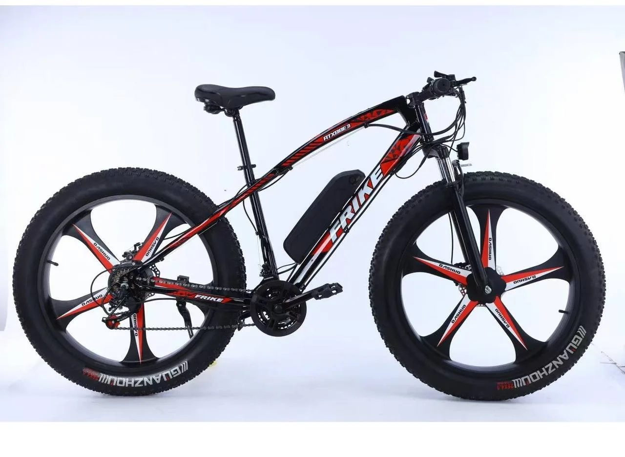 Это электрофэтбайк с широкими шинами для езды по снегу, песку и бездорожью.