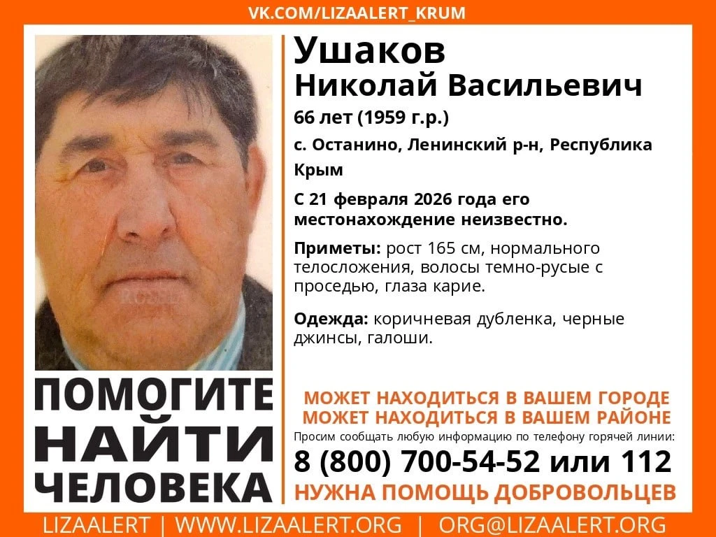 Пропал #Ушаков Николай Васильевич, 66 лет