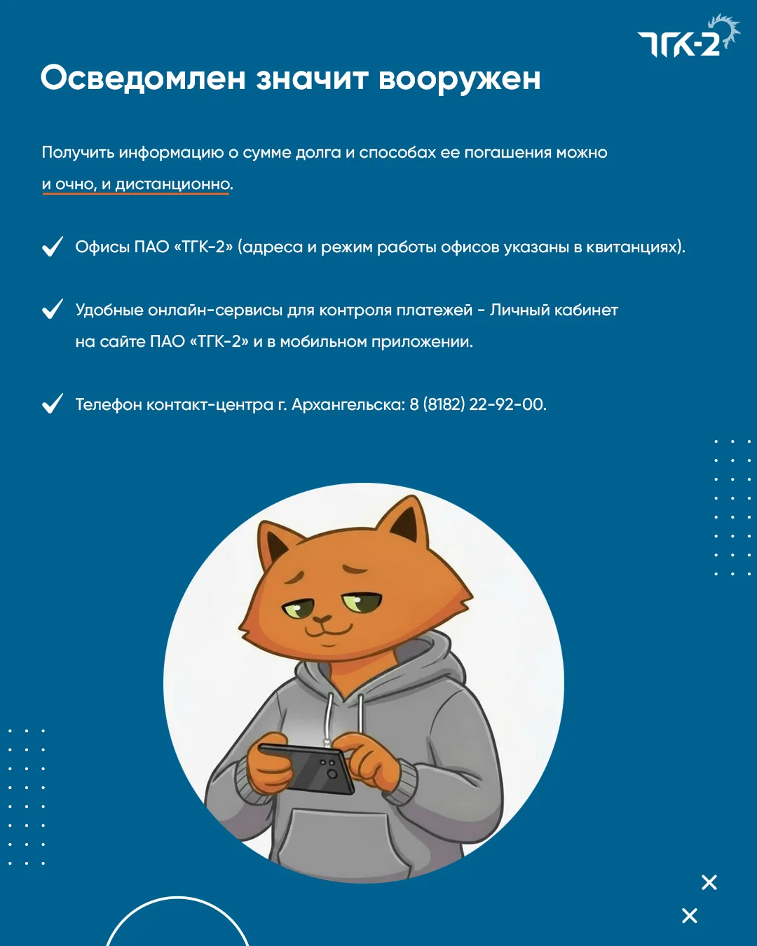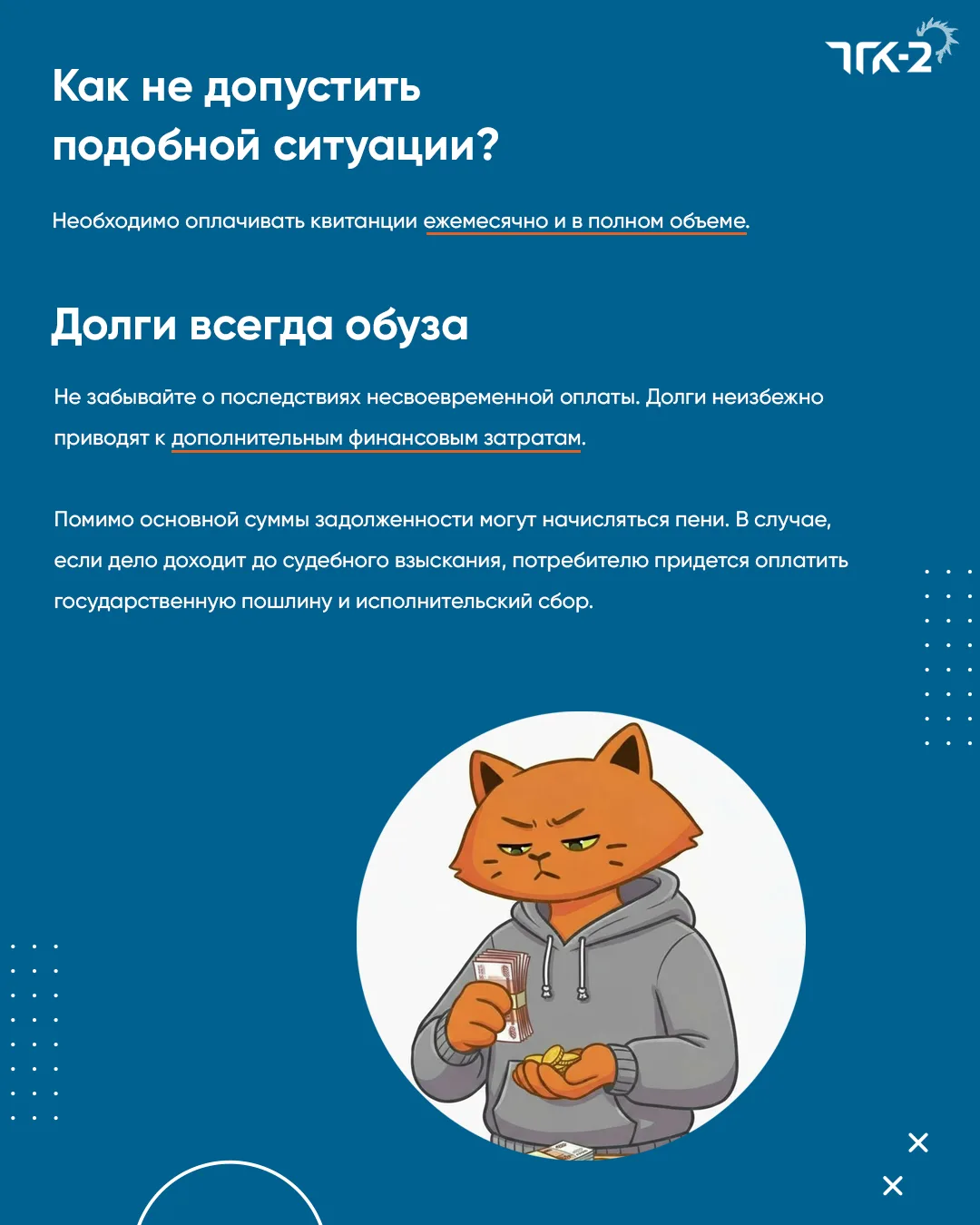 ✅ Погасите имеющуюся задолженность перед ПАО «ТГК-2» за отопление и горячую воду.