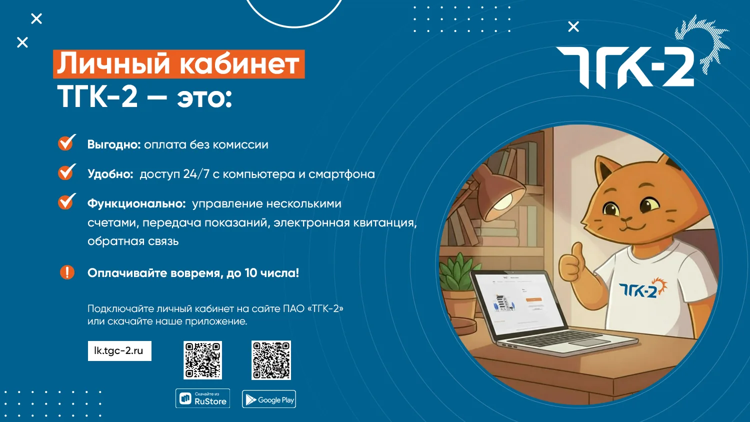 Напоминаем о дистанционных сервисах компании. Личный кабинет ТГК-2 — это удобно и функционально.