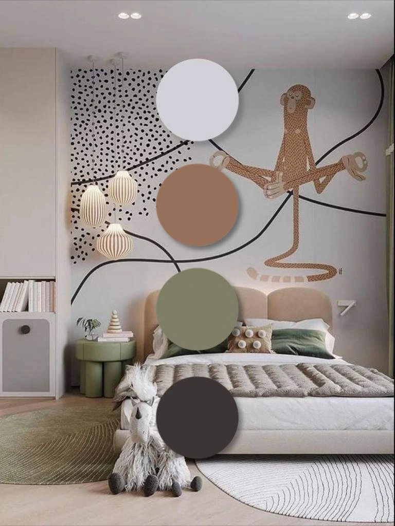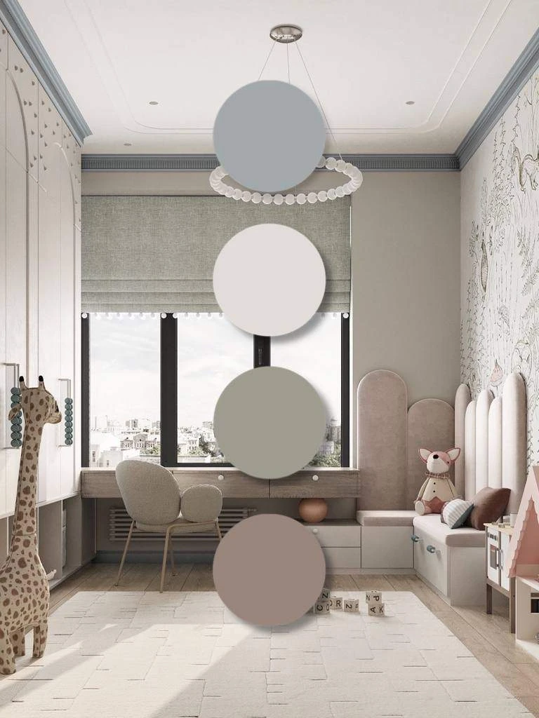 Цветовая гамма обычно спокойная и нейтральная. Чаще всего встречаются белый, молочный, песочный, кофе с молоком, чёрный. Чтобы интерьер не выглядел скучно, к классическим тонам добавляют яркие акценты — оранжевый, красный, голубой, зелёный.