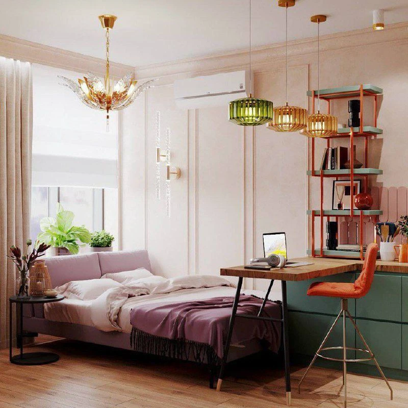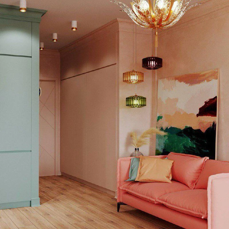 Дизайн выполнен в стиле Нео Мемфис. Метраж: 29 кв.м.