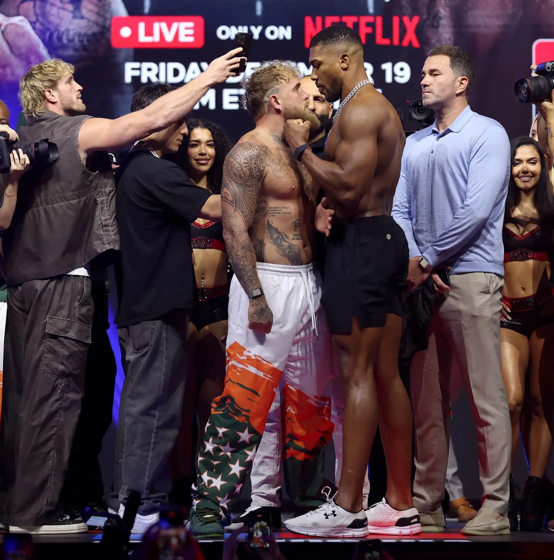 23:33 19-12-2025 Стало известно сколько заработают Энтони Джошуа и Джейк Пол за завтрашний бой. Энтони Джошуа и Джейк Пол заработают по 92 миллиона долларов.