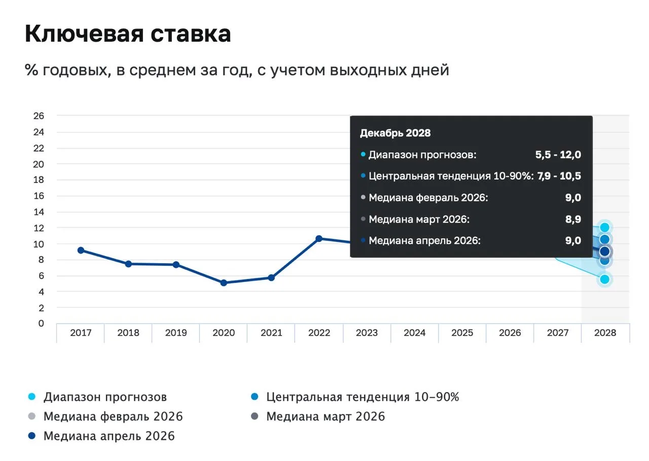 - Ключевая ставка на 2028 год от 5.5% до 12%