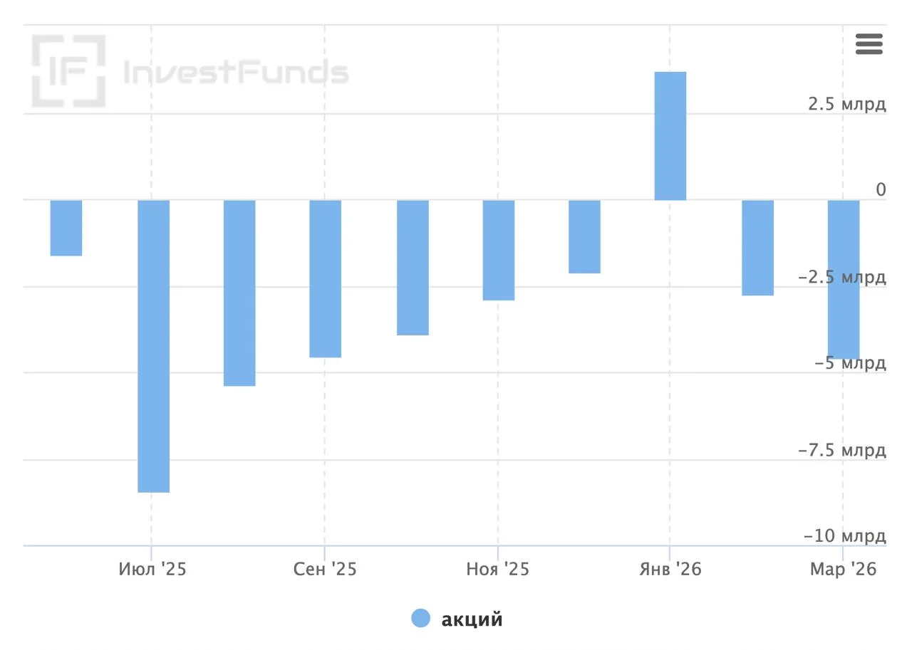 Fun fact: с момента первого снижения ставки ЦБ инвесторы выводили деньги из ПИФов акций 9 месяцев из 10 (в том числе 4.6 млрд рублей в марте - рекордный отток с августа) 👆