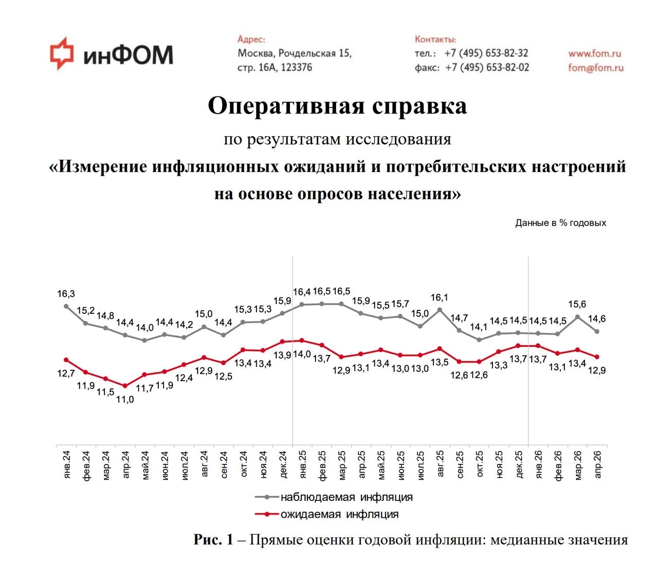 Инфляционные ожидания россиян снизились с 13.4% в апреле до 12.9% в марте 🎉