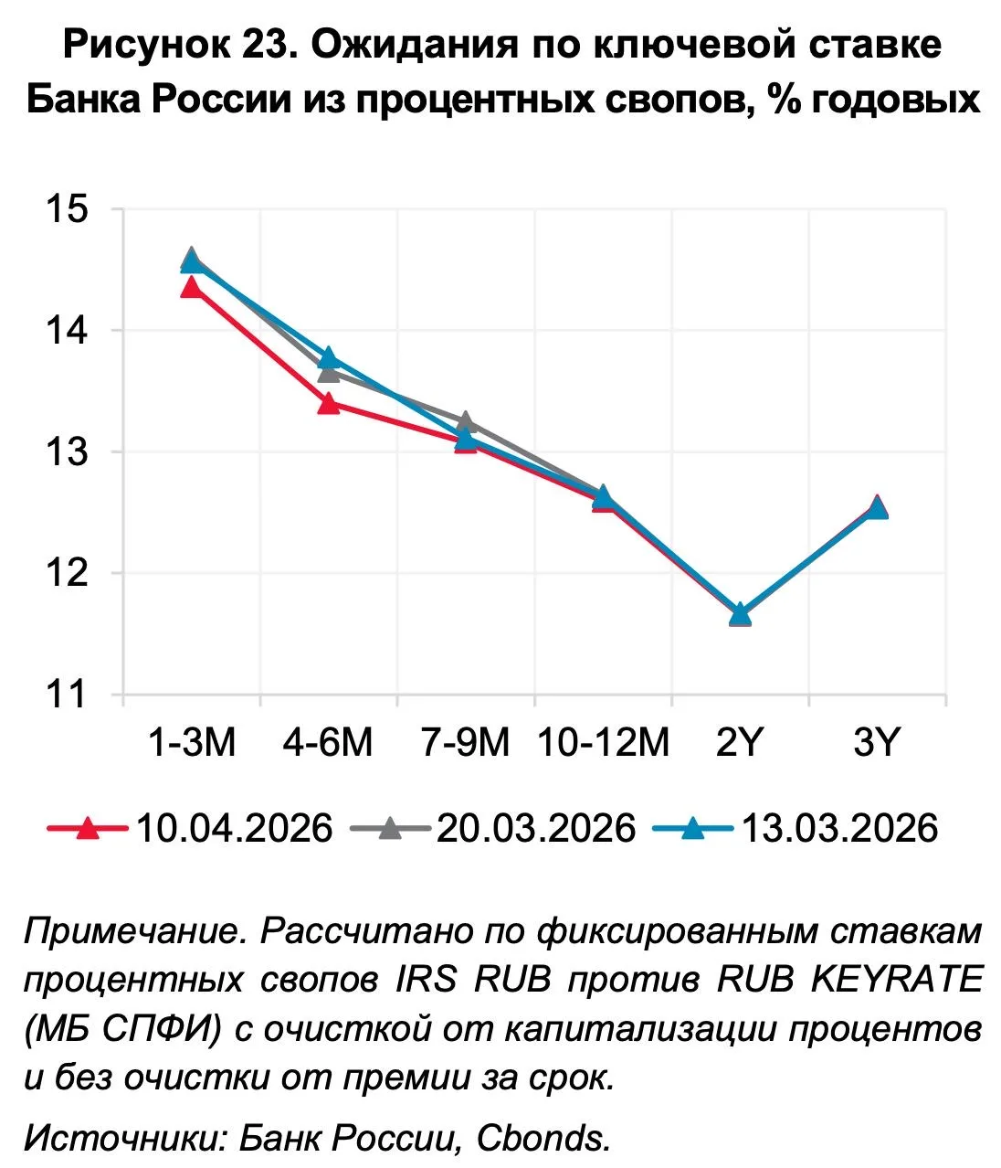 ЦБ посчитал, что исходя из процентных свопов банки ждут постепенного снижения ставки ЦБ до 13% к концу 2026 года.