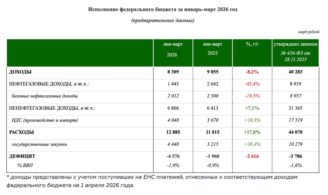 В марте 2026 госрасходы составили 4.669 трлн рублей vs 3.179 трлн рублей в марте 2025 года - рост на 1.5 трлн рублей или на 47%.