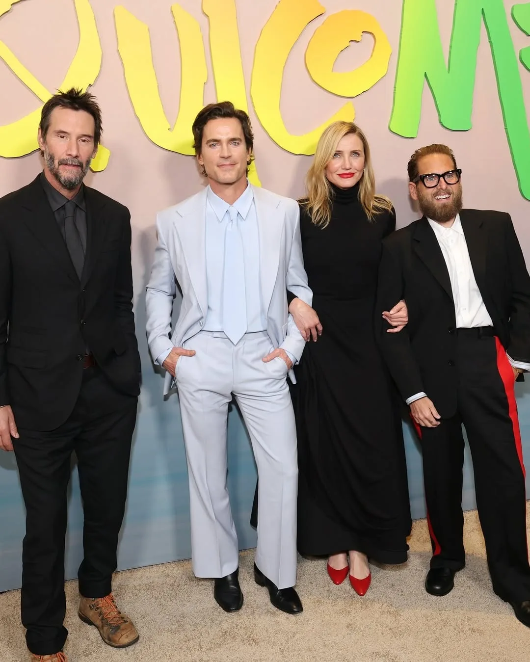 Красивая Кэмерон Диас, невероятно похудевший Джона Хилл, счастливые Киану Ривз и Александра Грант, пластиковый красавчик Мэтт Бомер: в Нью-Йорке прошла премьера чёрной комедии «Последствия».