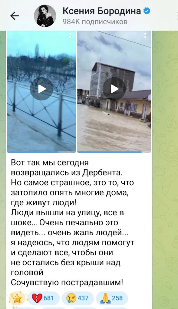 Ксения Бородина вышла на связь из захваченного стихией Дагестана