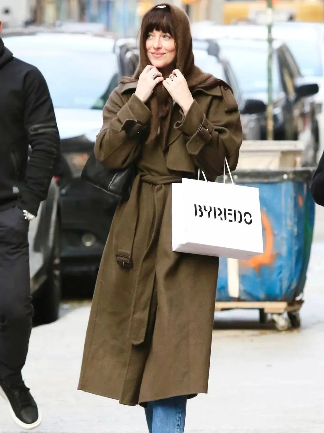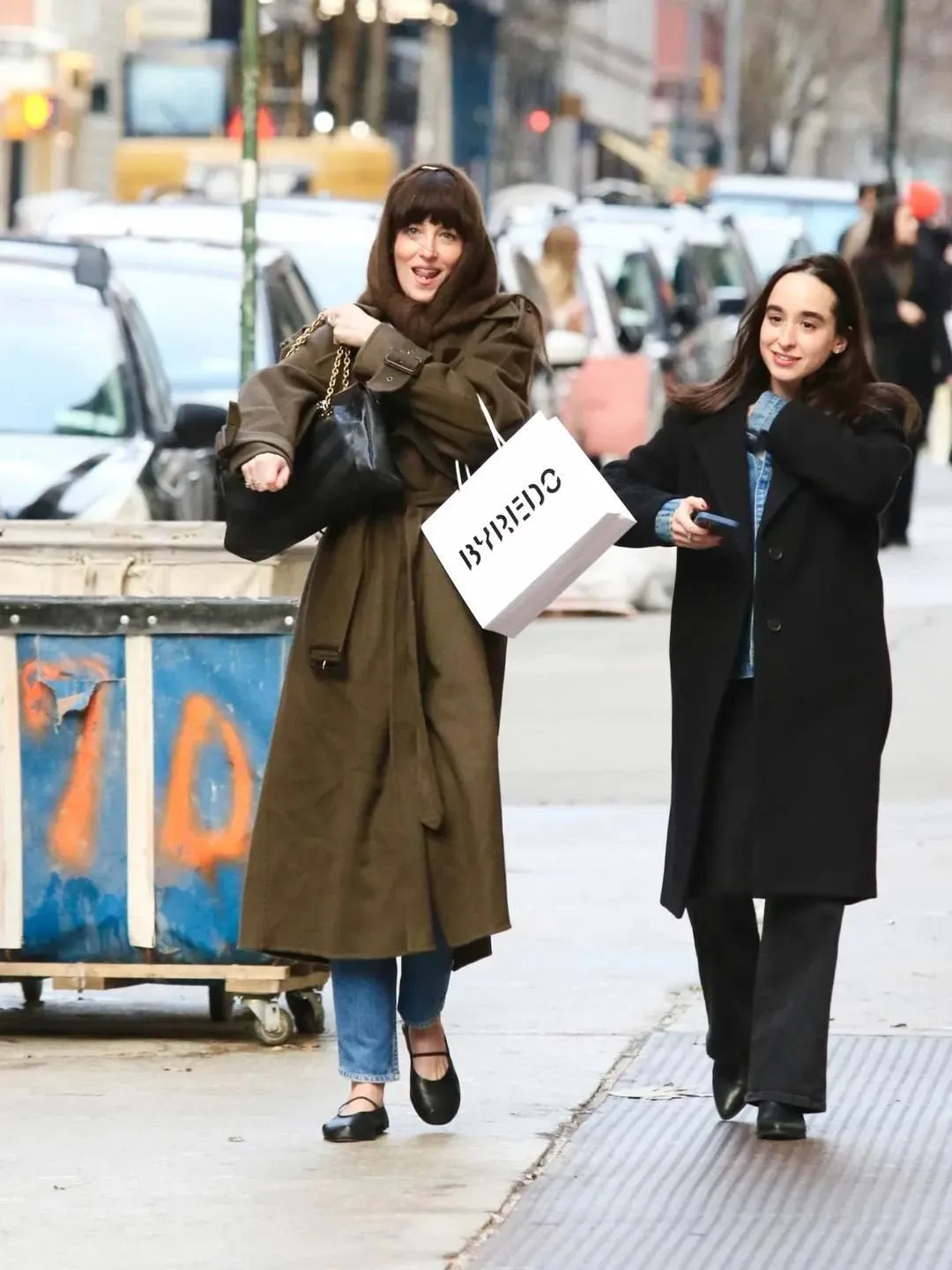Дакота Джонсон раздала стиля на прогулке в Нью-Йорке: на предновогодний шопинг с подругой актриса отправилась в кашемировом пальто Yeli, шарфе The Row и с сумкой Valentino.