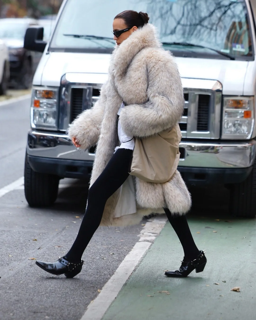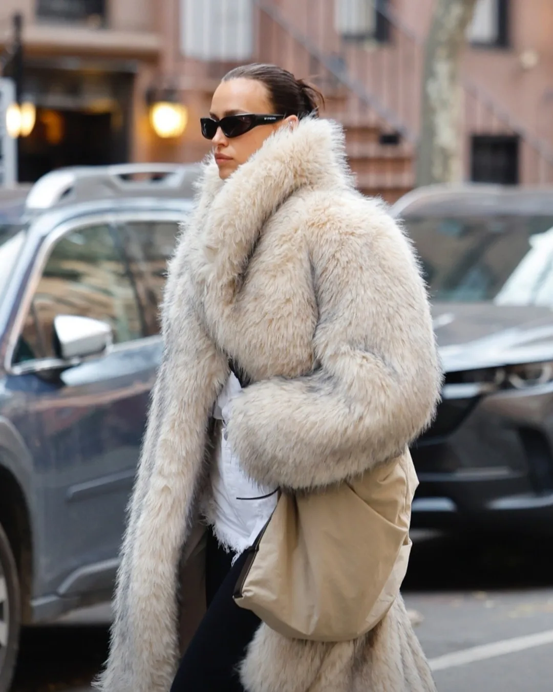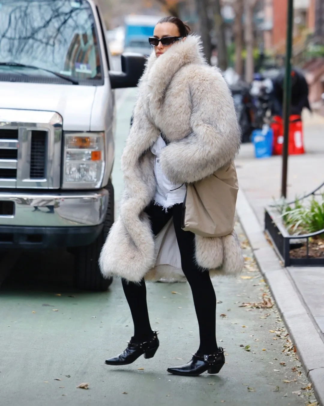 Ирина Шейк раздала стиля на прогулке в Нью-Йорке: шуба макси + джинсовые шорты + ботинки с шипами = вы великолепны!